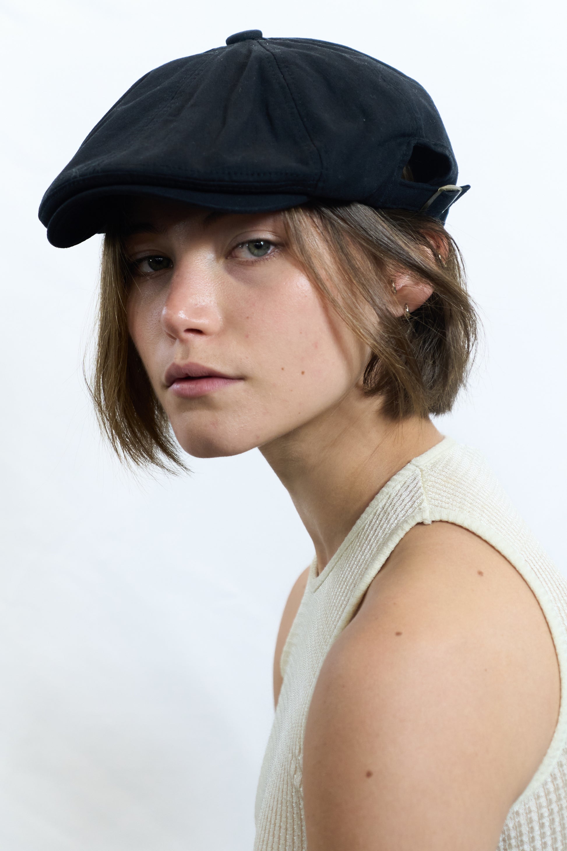 A timeless newsboy-style cap featuring subtle dart details at the crown. Clean, structured, and easy to wear with both tailored and casual looks.