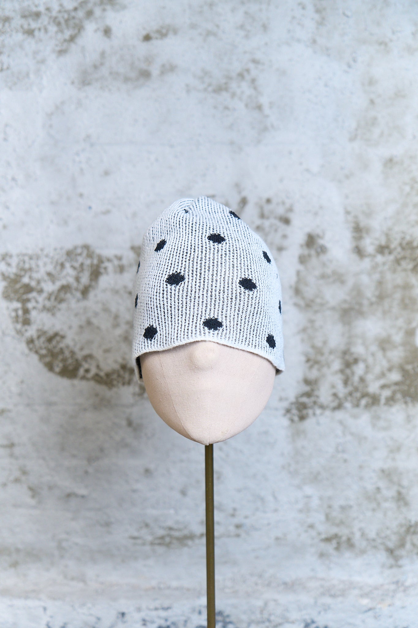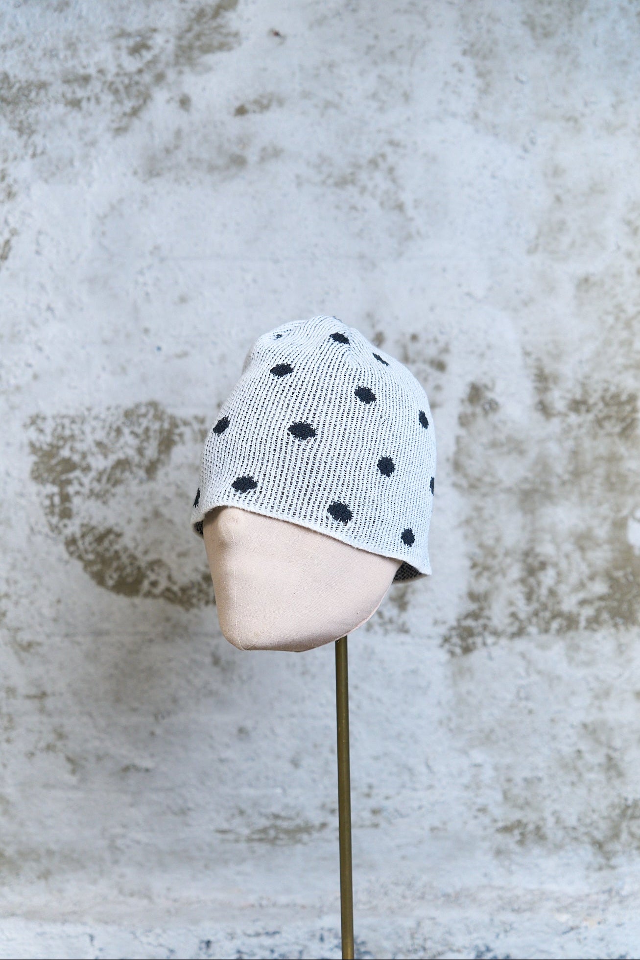 BLACK POLKA DOT KNIT BEANIE — WHITE