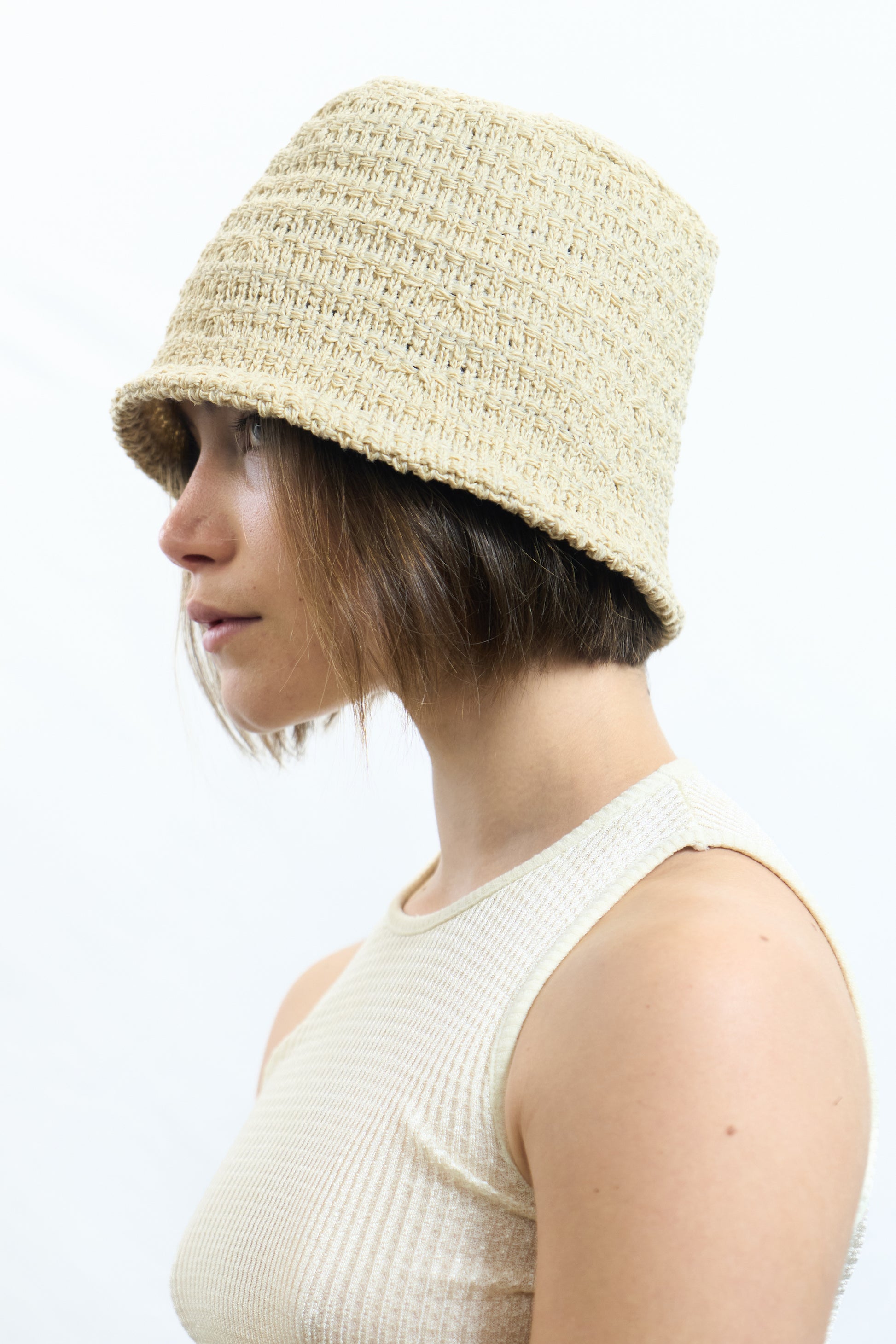 TEXTURED CROCHET BUCKET HAT BEIGE