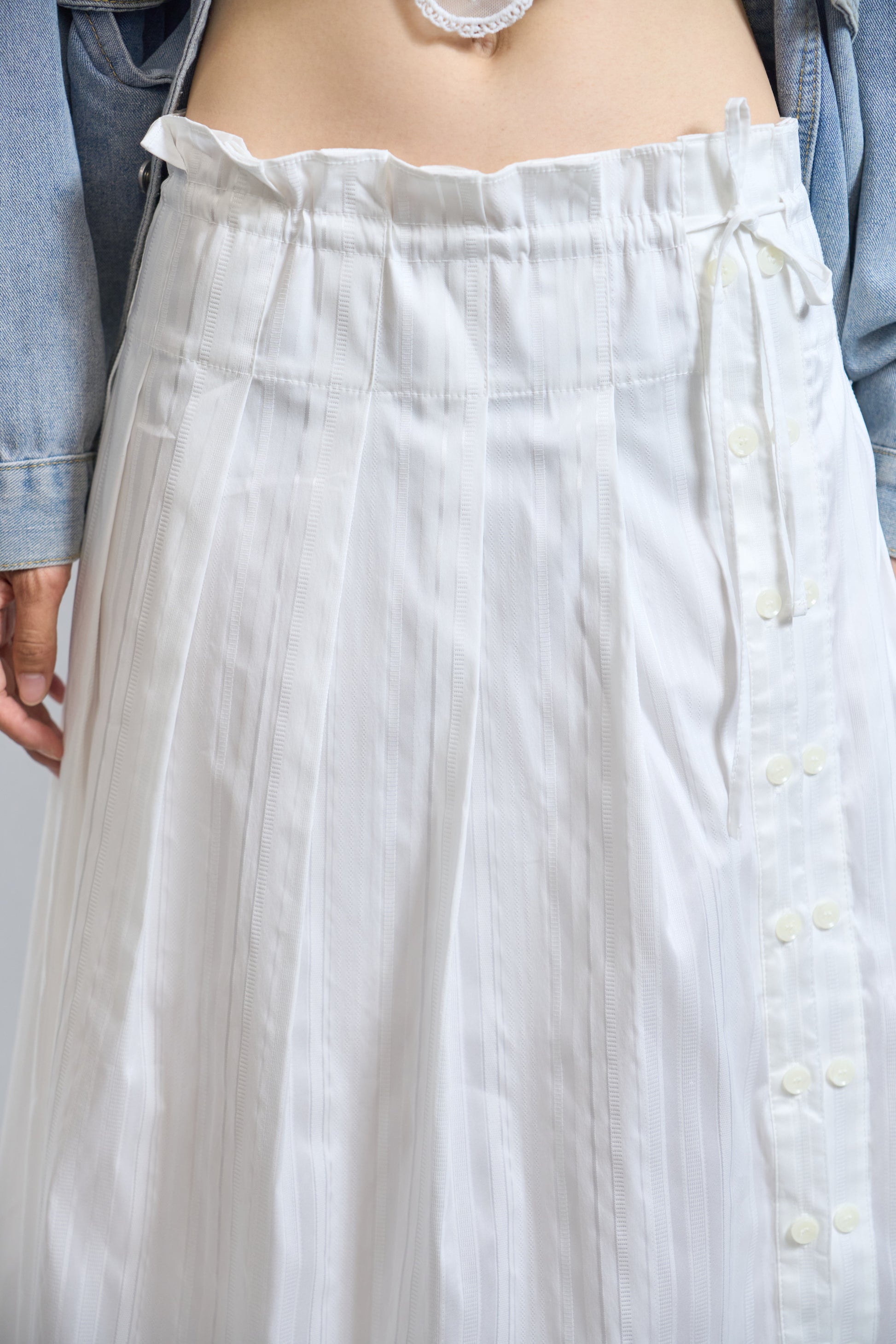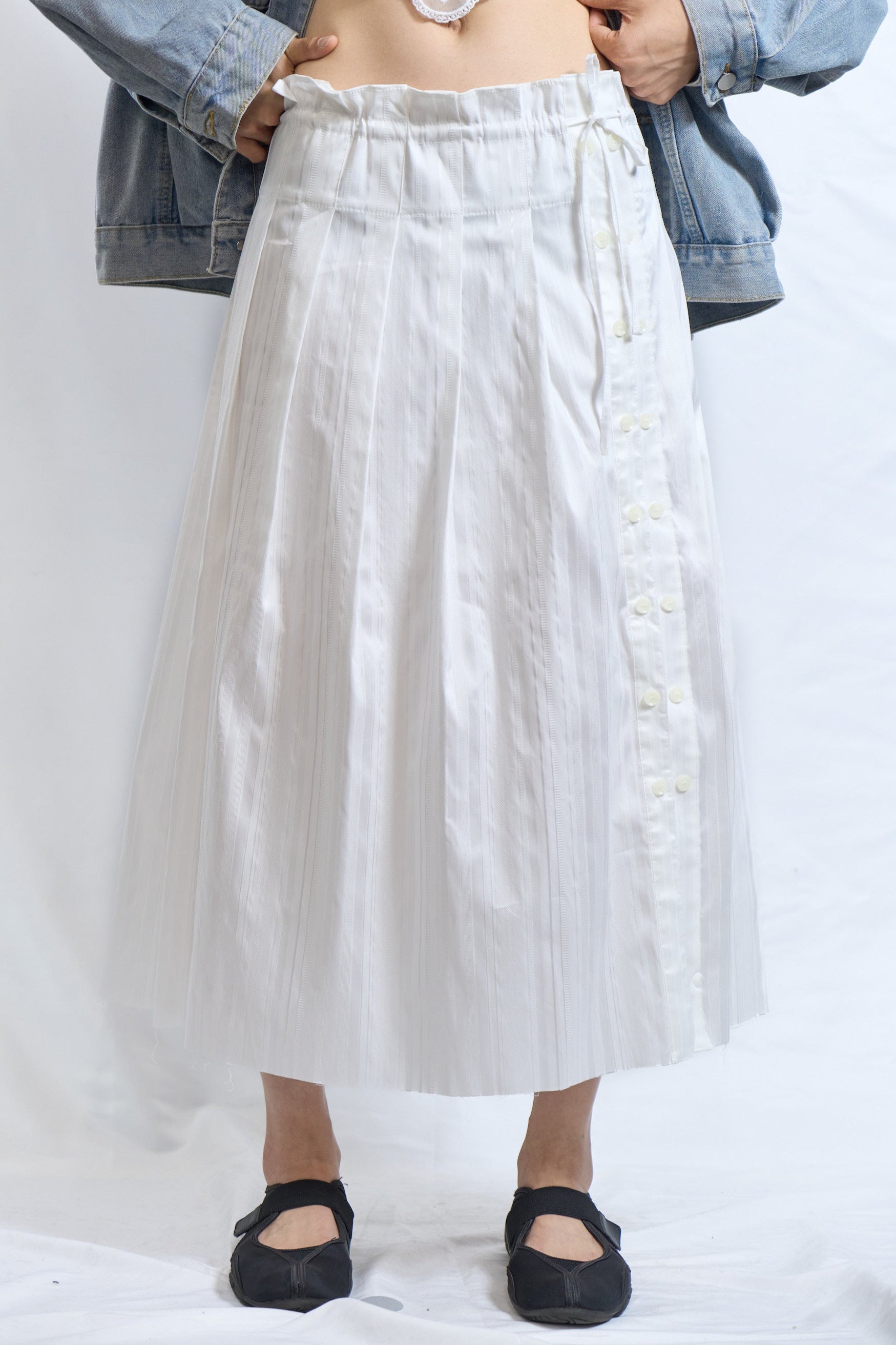 ASYMMETRIC BUTTON PLEATED SKIRT WHITE