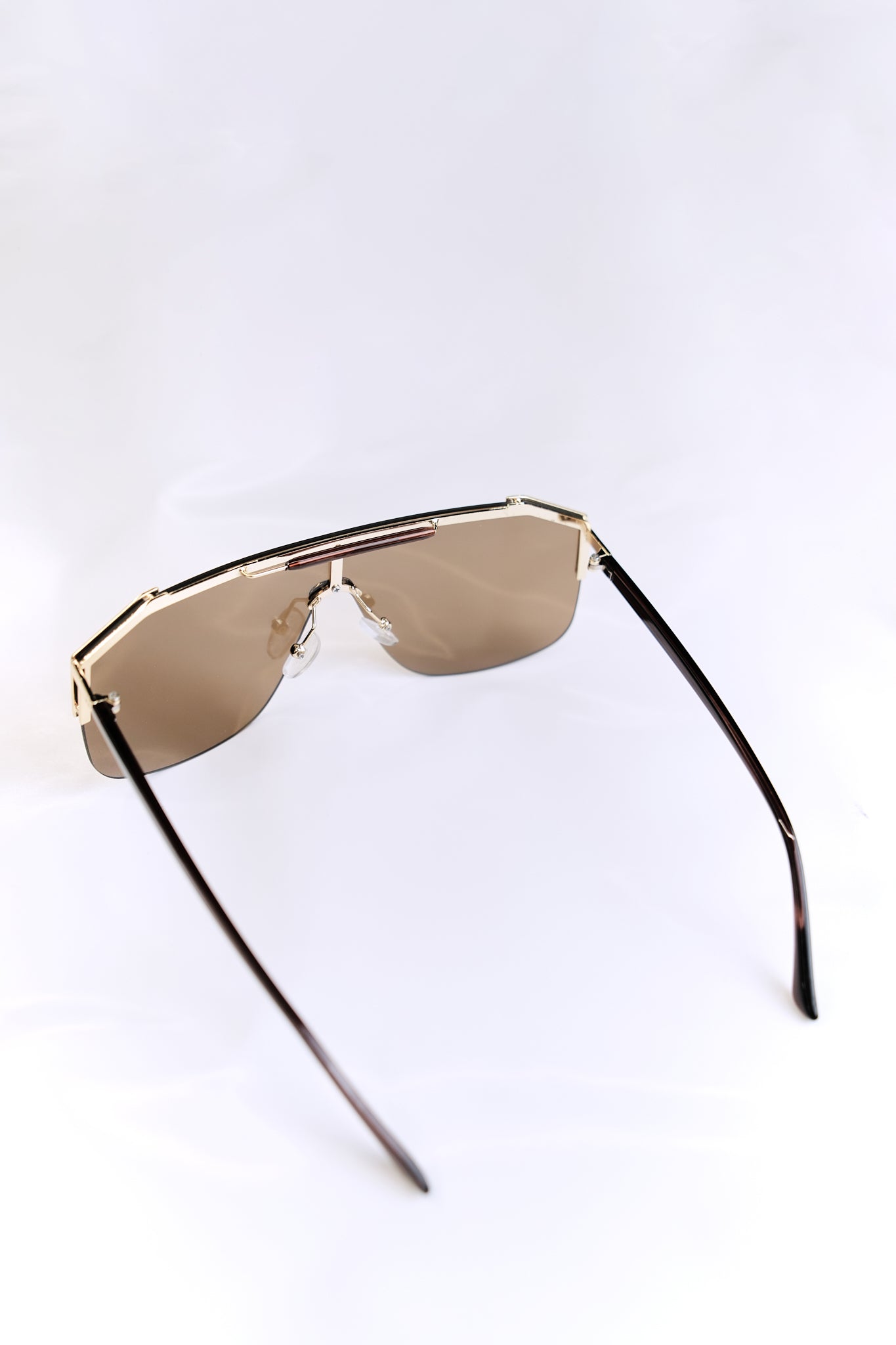 BROWN OVERSIZED SEMI-RIM SUNGLASSES