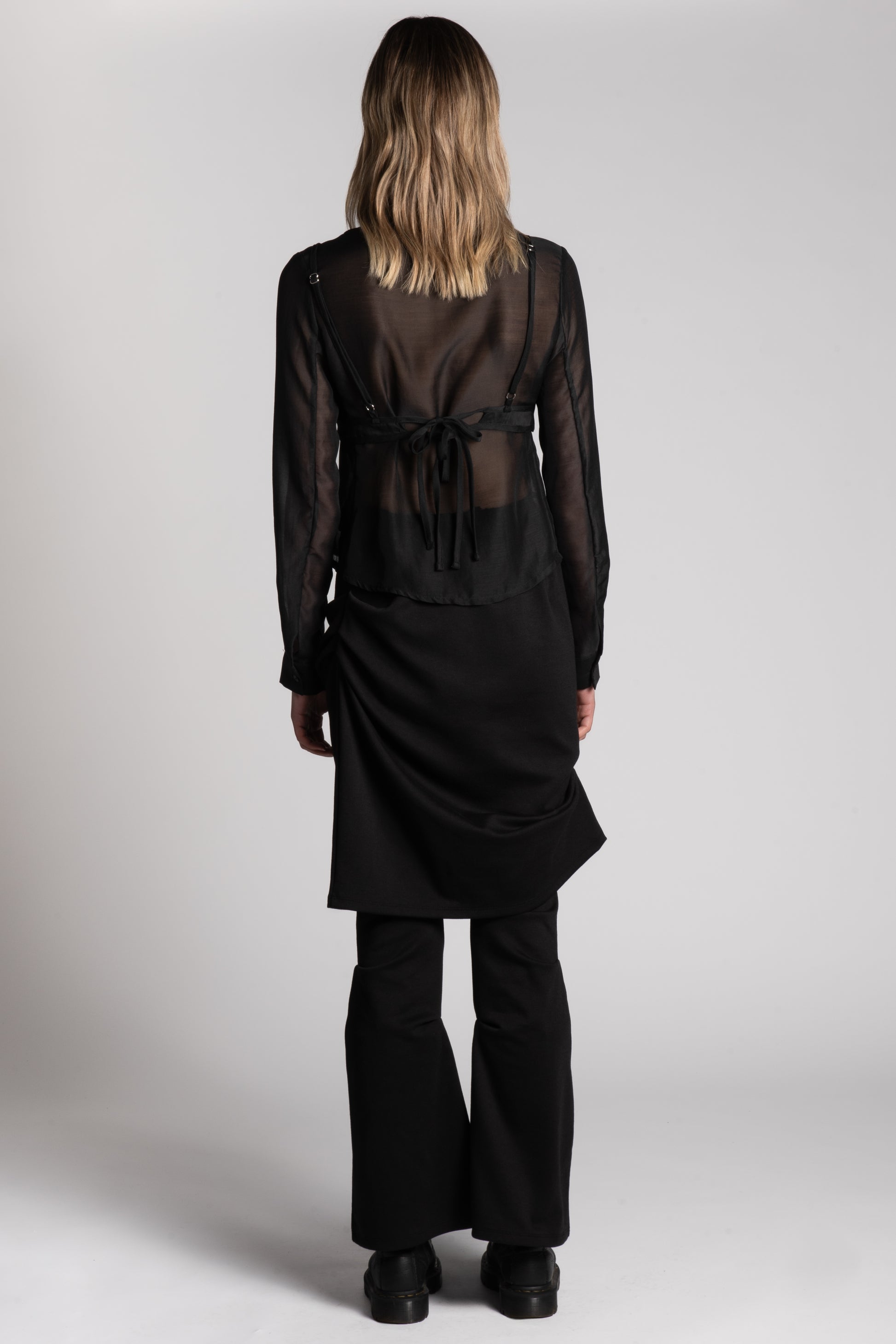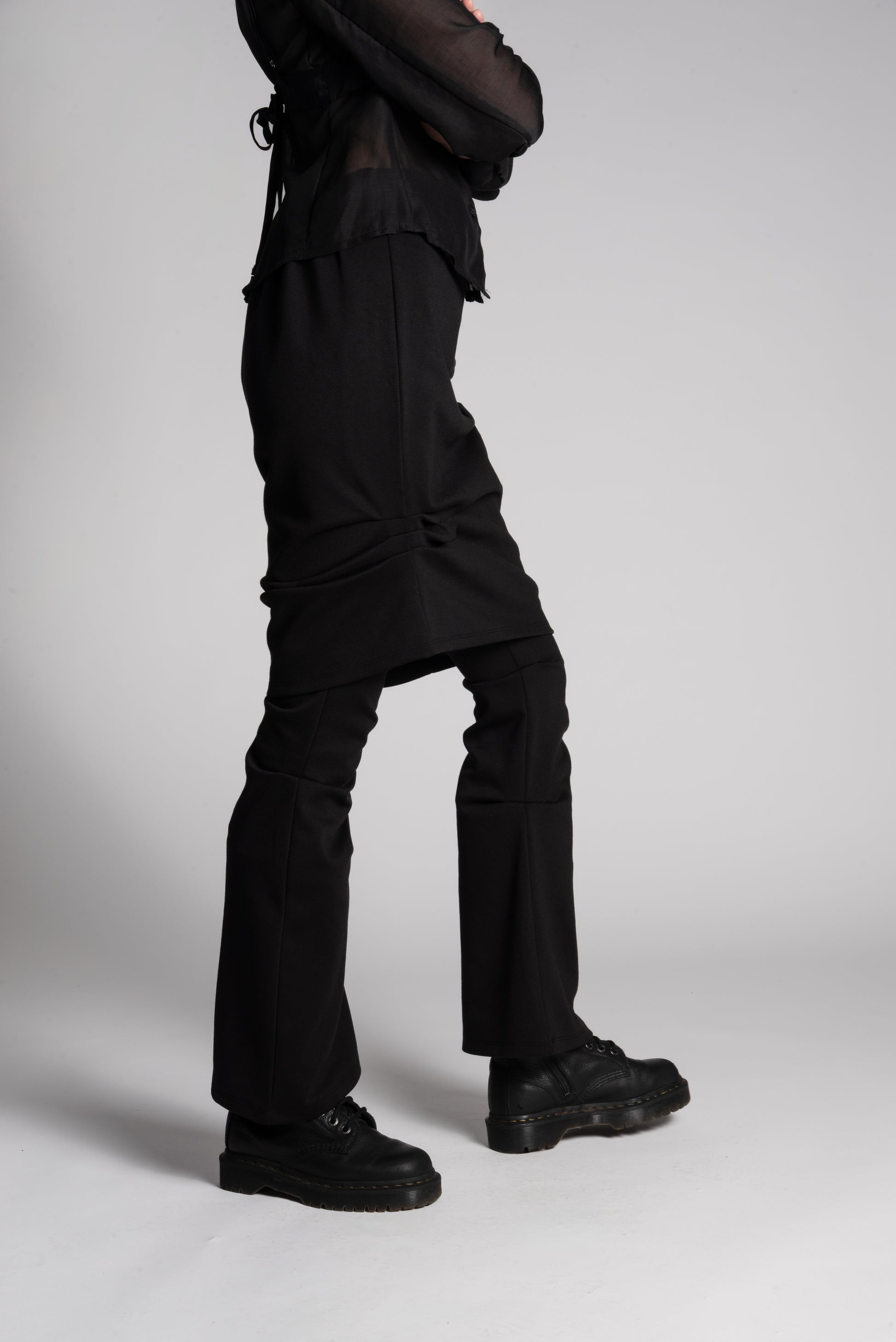 The BLACK SKIRT LAYER PANTS reinterpret volume and form through architectural construction.