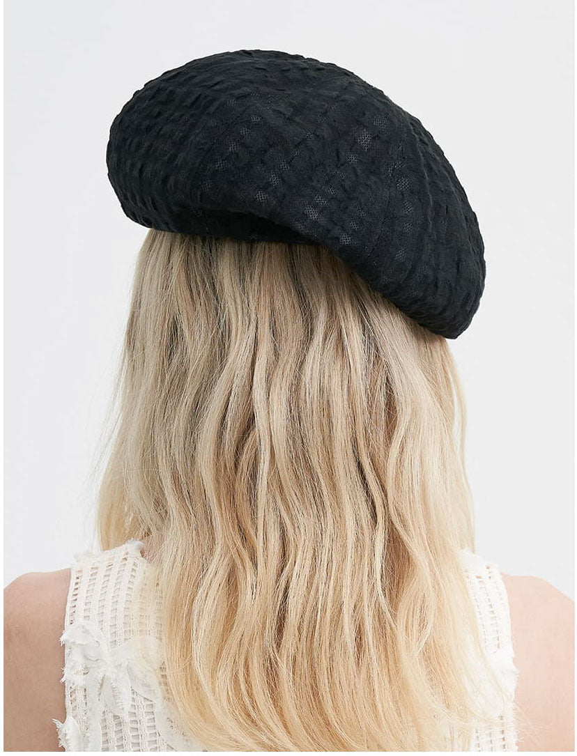 This summer beret is lightweight and versatile, allowing for various styling options with its simple pattern. Made with rich fabric texture, it's easily adjustable with Velcro on the inside for a perfect fit
