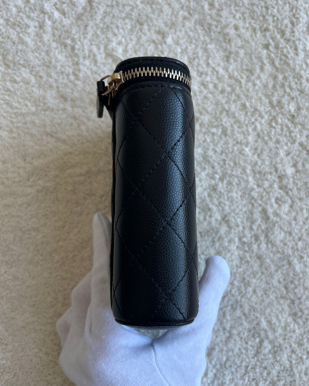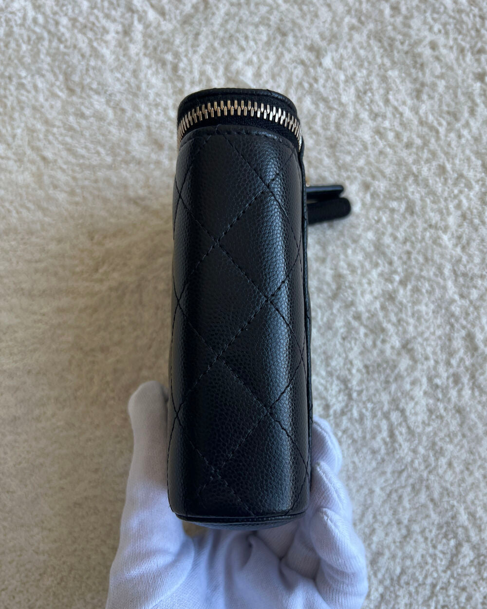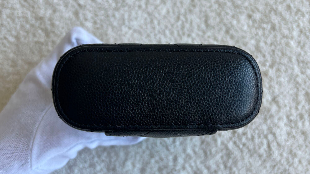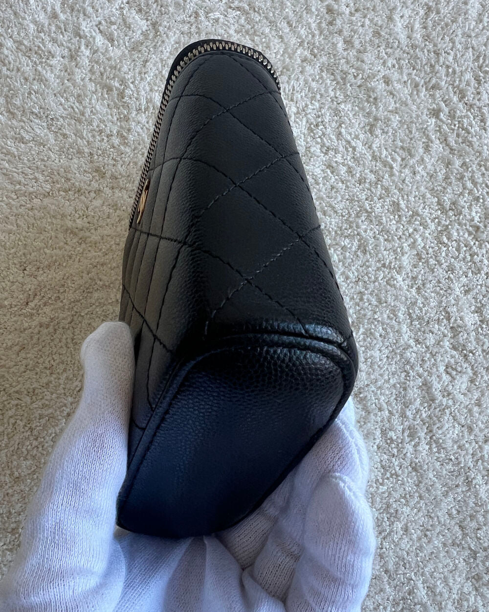 The iconic Chanel Classic Mini Vanity Crossbody Bag is now available. Made from durable caviar leather, this bag is scratch-resistant and offers more storage space than typical vanity bags, making it both practical and stylish. Both the exterior and interior are in excellent condition.