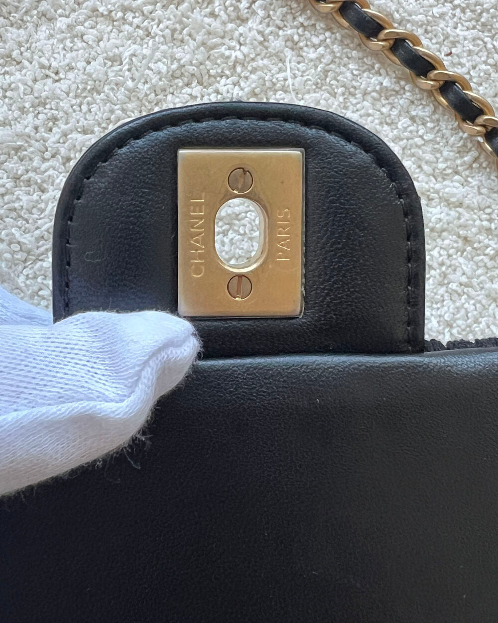 This particular item remains in excellent condition, with only minimal signs of use. Notably, the protective seal stickers on the turn-lock hardware and zipper slider are still intact, preserving its pristine quality. A must-have for CHANEL enthusiasts!