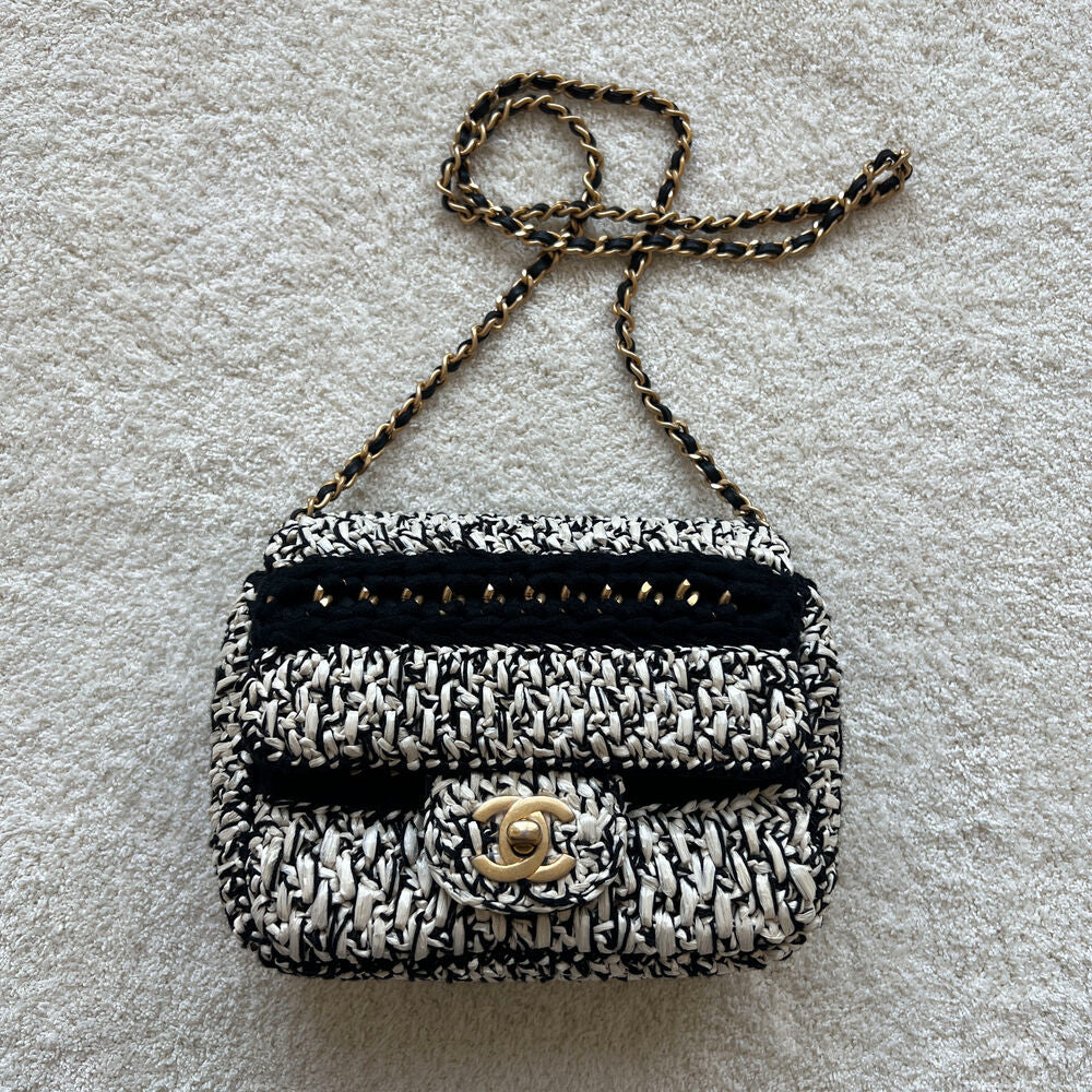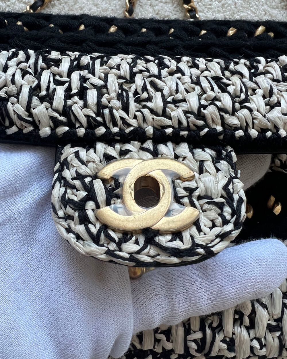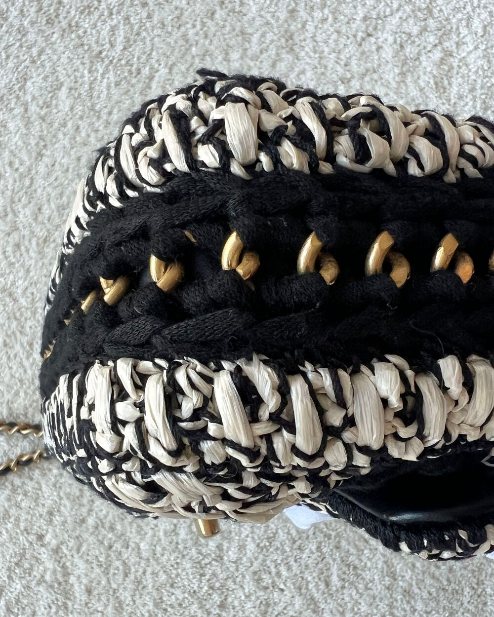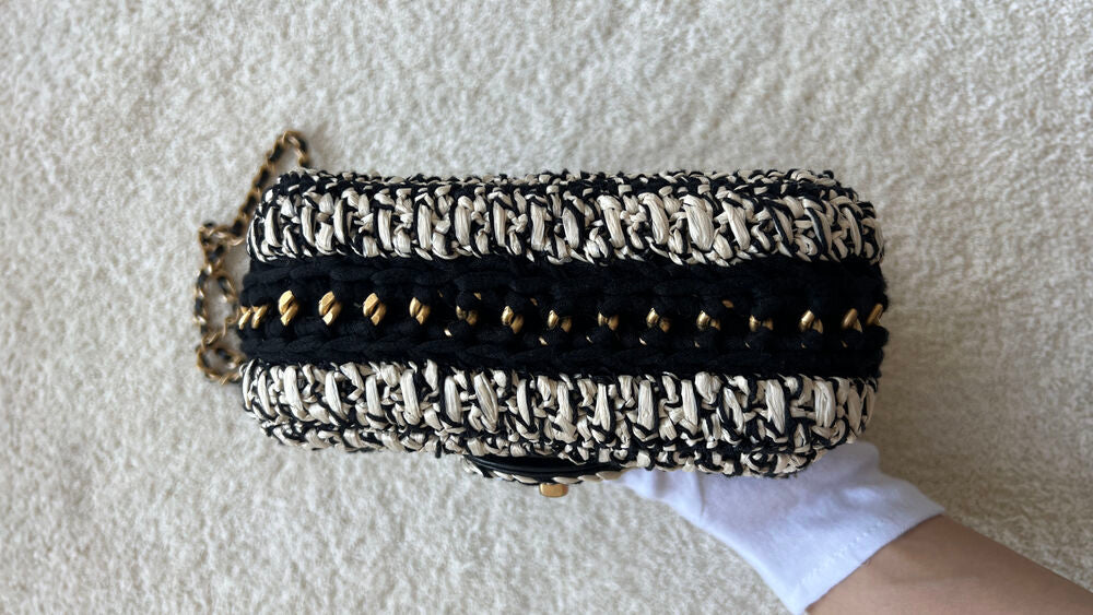Crafted from a cotton and raffia blend, this tweed bag offers a refined and luxurious texture while remaining versatile enough for year-round wear. The combination of CHANEL’s signature tweed and a sleek, structured silhouette makes it a highly collectible piece.