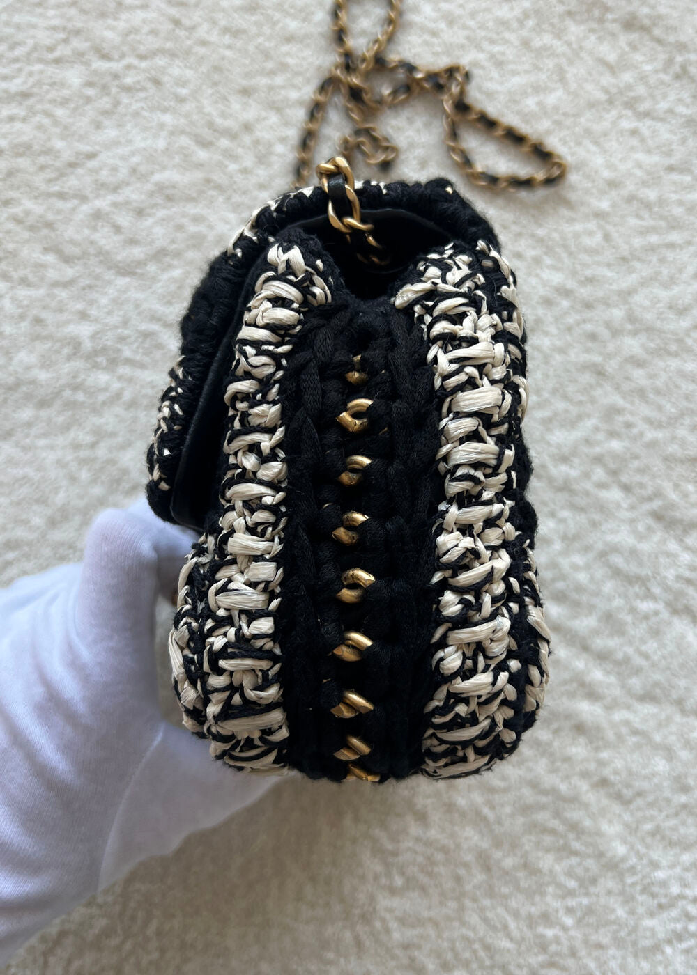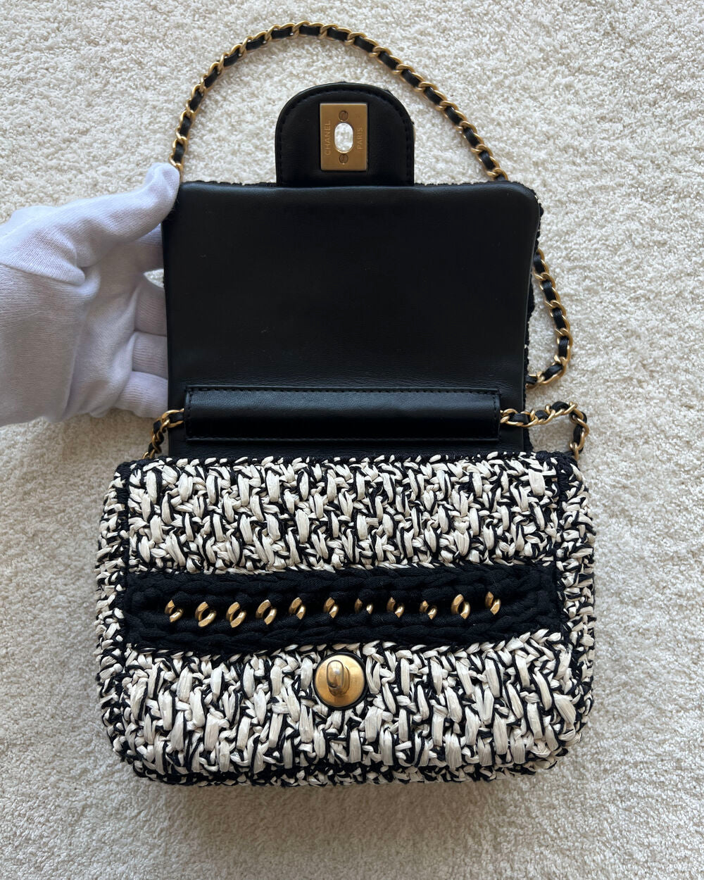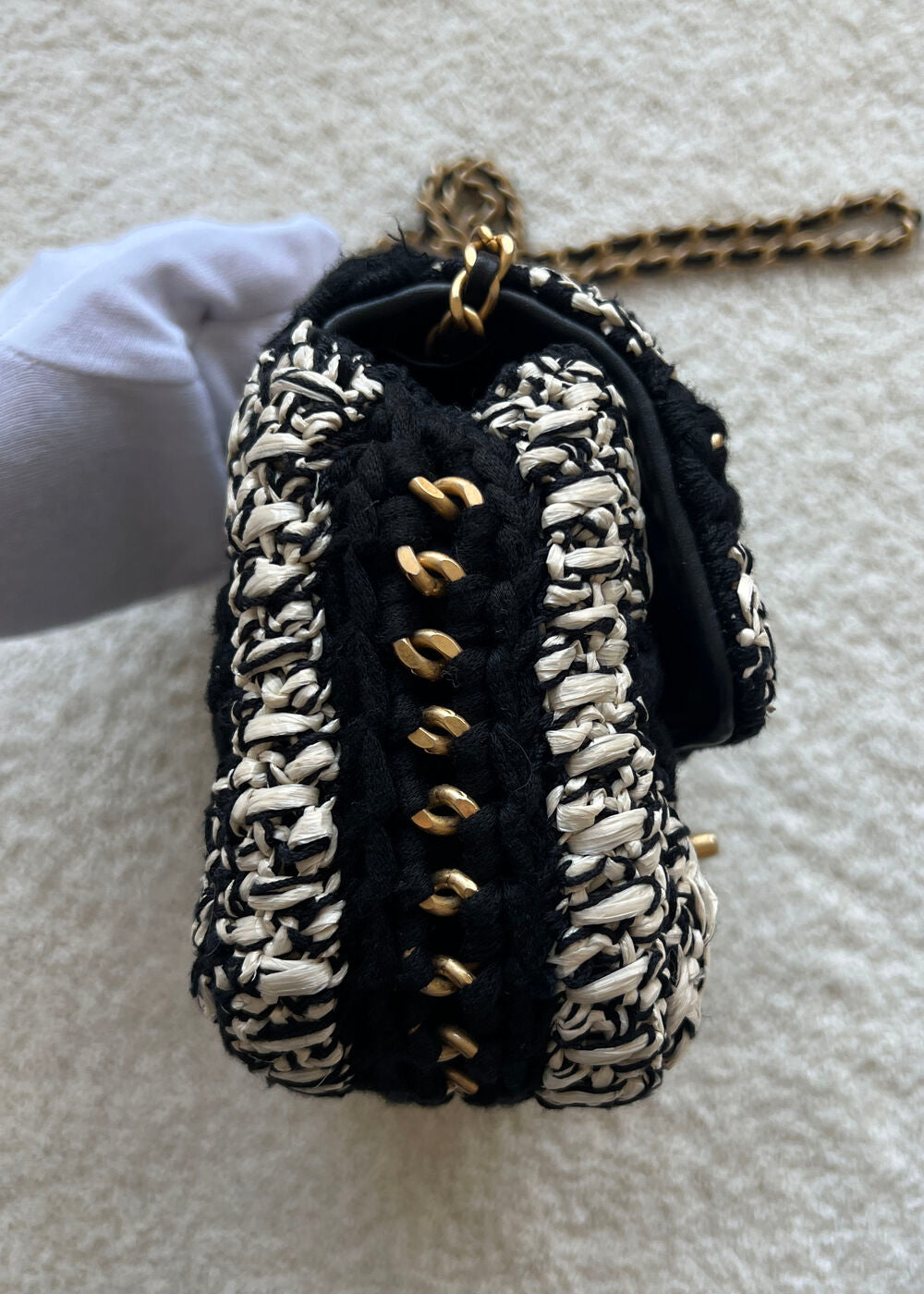 Crafted from a cotton and raffia blend, this tweed bag offers a refined and luxurious texture while remaining versatile enough for year-round wear. The combination of CHANEL’s signature tweed and a sleek, structured silhouette makes it a highly collectible piece.