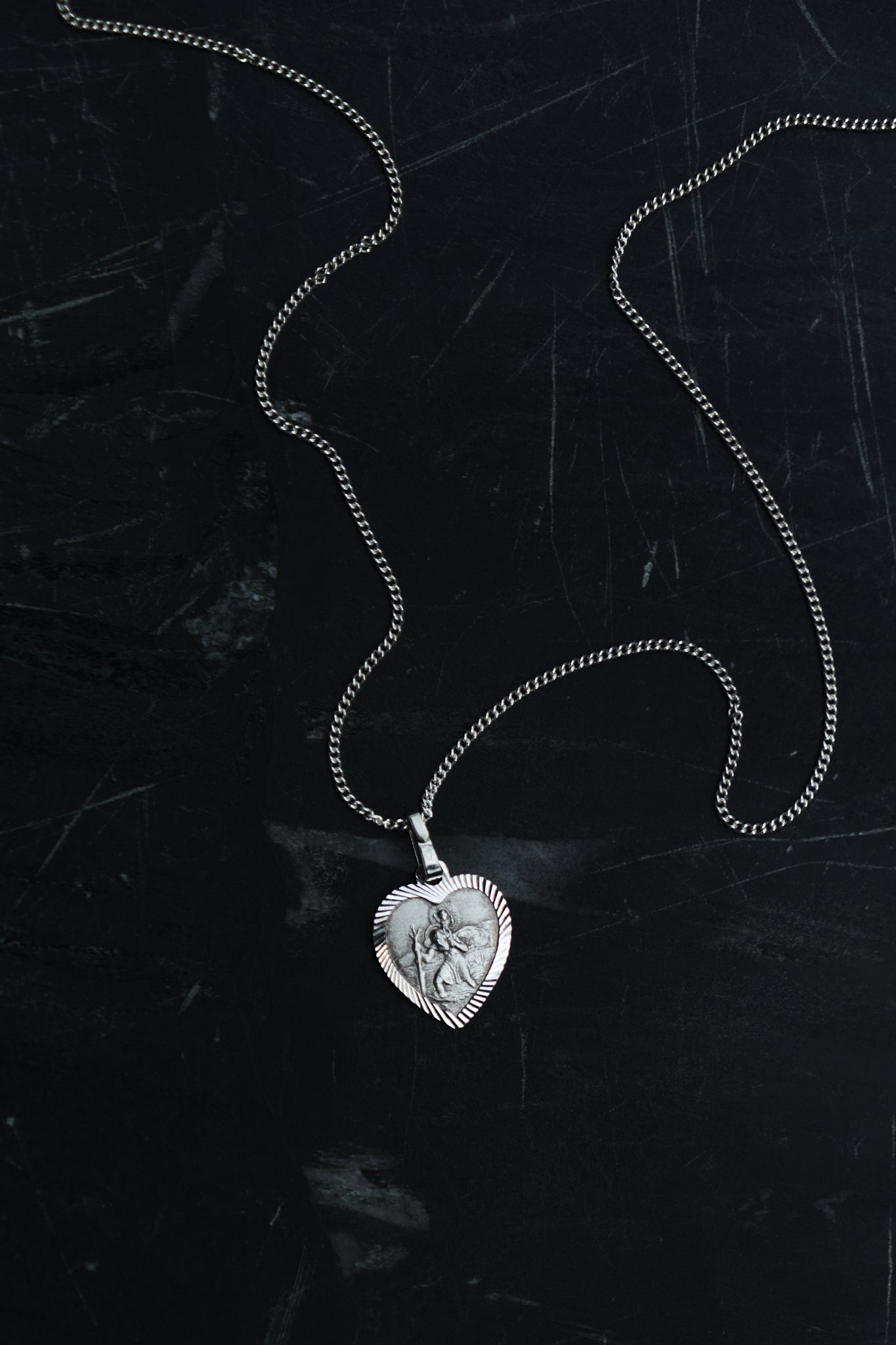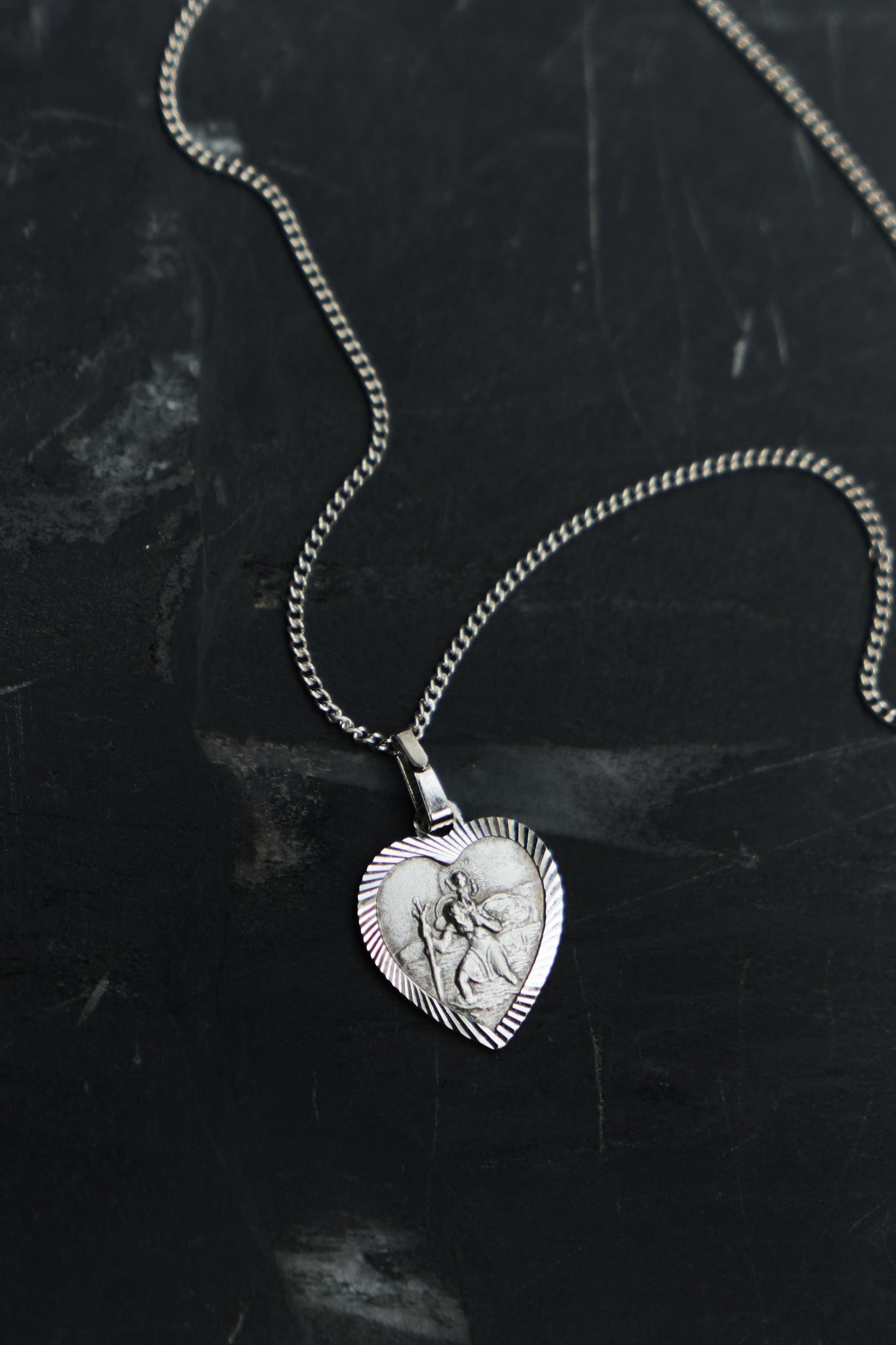 ST CHRISTOPHER HEART PENDANT / CHAIN — STERLING SILVER 925 (2G)
