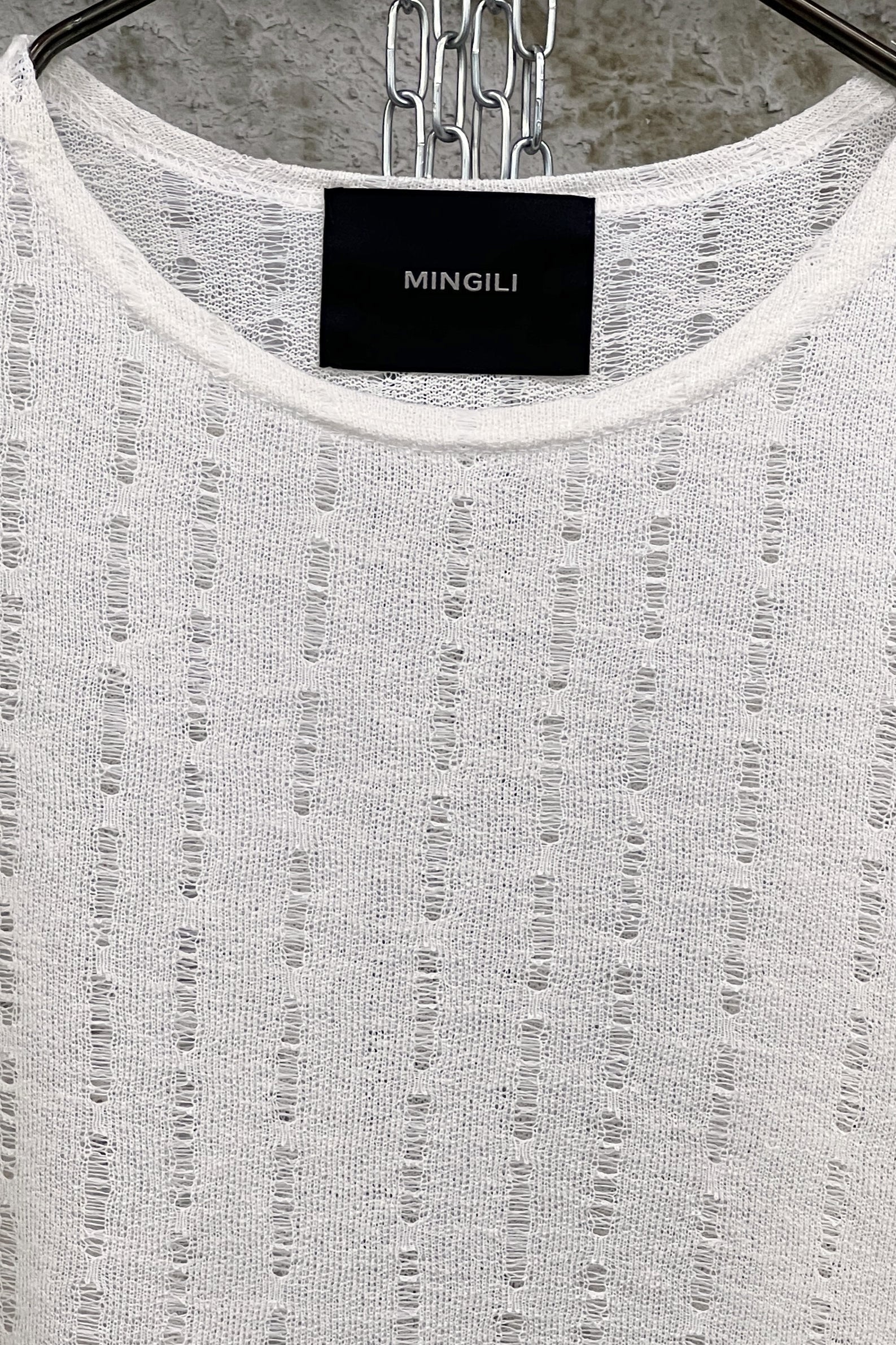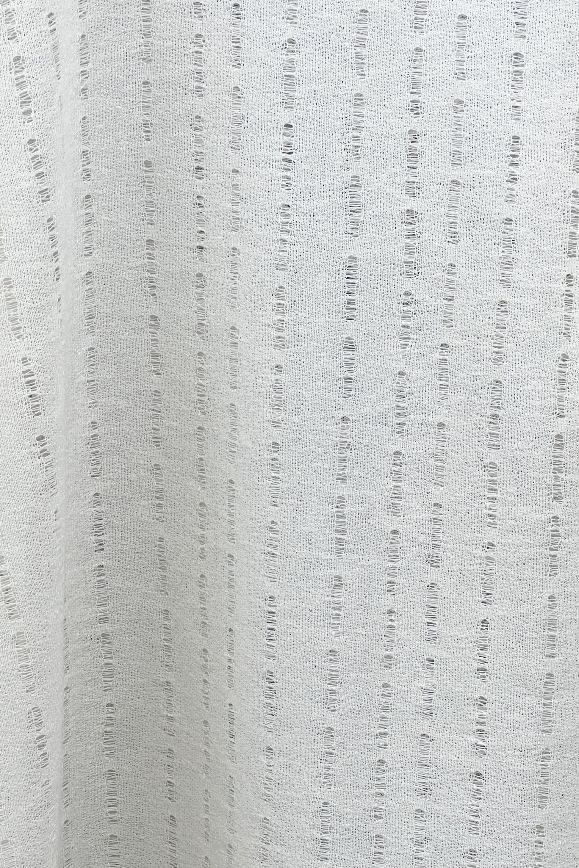 This off-white textured crewneck features a regular linear knit pattern, offering both structure and softness. Worn as a lightweight layer or on its own, it brings subtle dimension to any outfit.