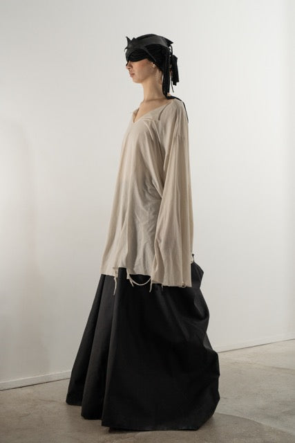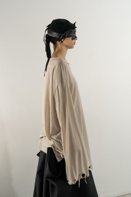 Crafted from a lightweight viscose-blend fabric, the Destroyed Long Sleeve Top reinterprets minimalism with a raw, modern edge. The relaxed silhouette and soft drape maintain the effortless flow of the original style, while subtle distressed details along the seams and hem introduce texture and attitude.