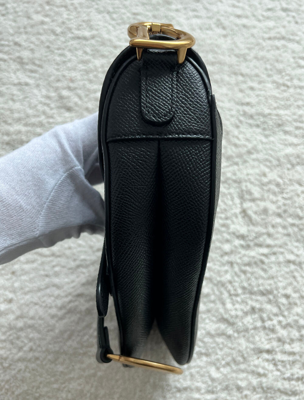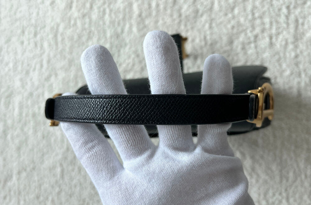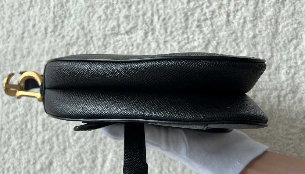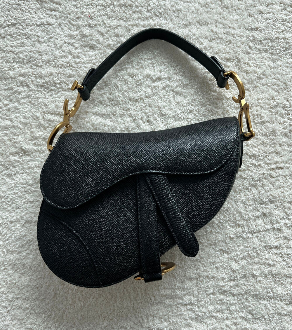 The Dior Saddle Bag, designed by John Galliano in the 1990s, was inspired by a horse's saddle, featuring the iconic split at the bottom and a CD logo connected to the handle. This bag became a legendary "It bag," frequently seen on the arms of "It girls" of the era. It was revived with great fanfare in the 2018 Dior FW collection. Despite its mini size, the Saddle Bag offers versatile styling options, making it perfect for daily wear. The bag is crafted from durable grained calfskin and remains in excellent condition with minimal signs of use, complete with its full set of accessories.