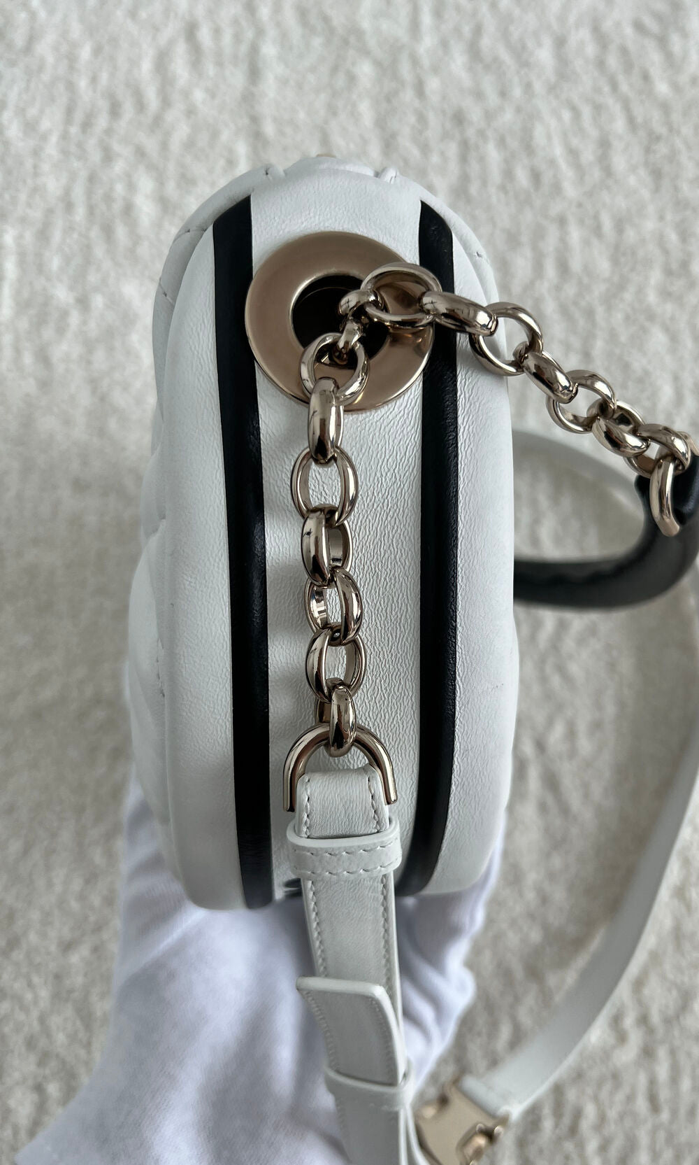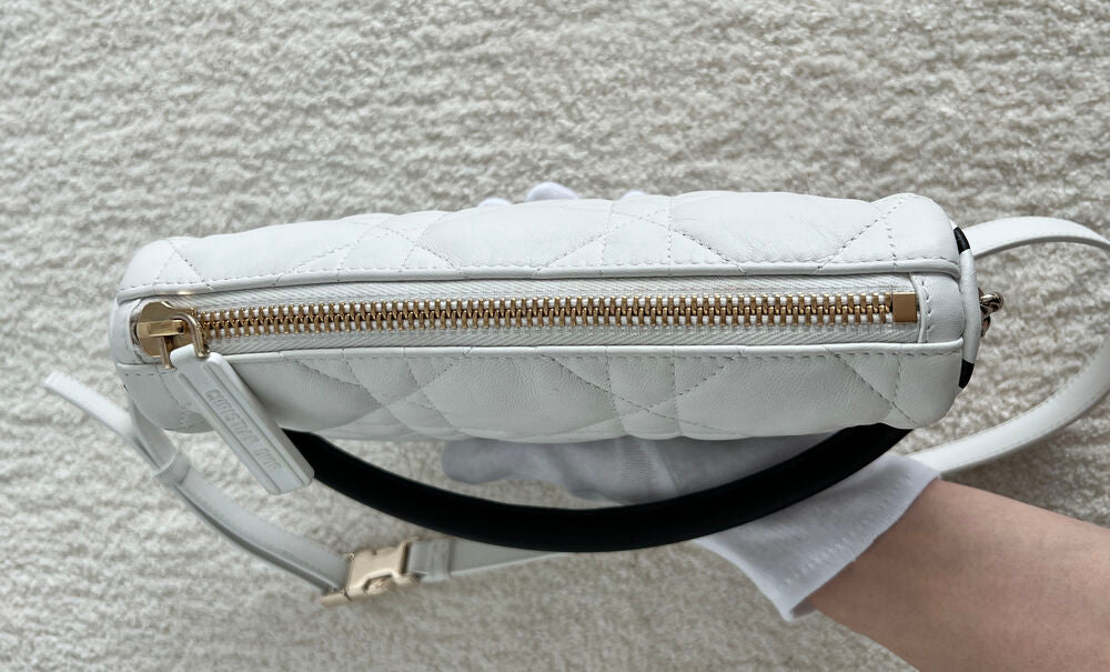 Part of the 2022 Dior Cruise Collection, the Vibe Hobo Bag draws inspiration from ‘athleisure’ and reinterprets the hobo silhouette with a modern twist. Unlike the classic, feminine mood typically associated with Dior, this sporty and contemporary design quickly became a favourite. The white colour, in particular, sold out rapidly on Dior's official website. With an adjustable leather strap, detachable shoulder strap, and top handle, this versatile bag can be styled as a handbag, shoulder bag, or crossbody. Its popularity is reflected in both international and domestic celebrity endorsements. Despite minor signs of use, this Dior Vibe Hobo Bag is in excellent overall condition and comes complete with all original accessories, making it a highly collectible item.