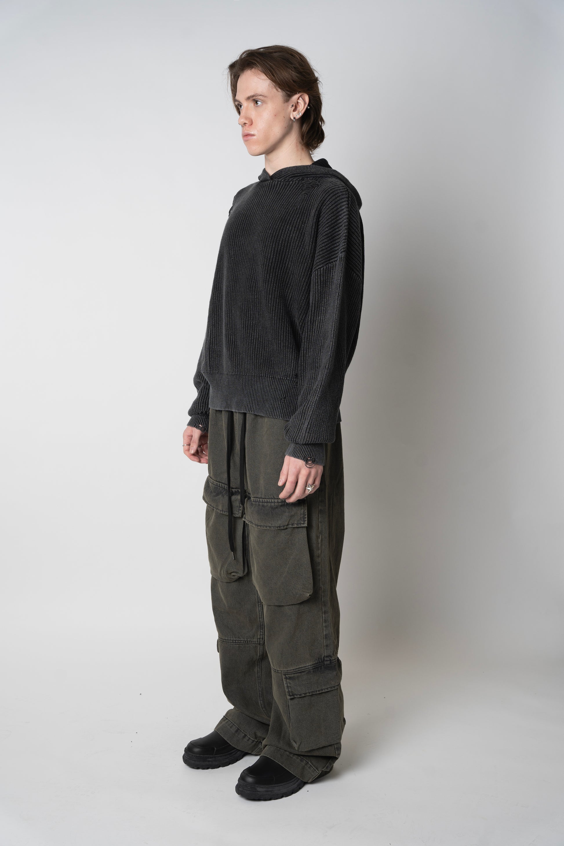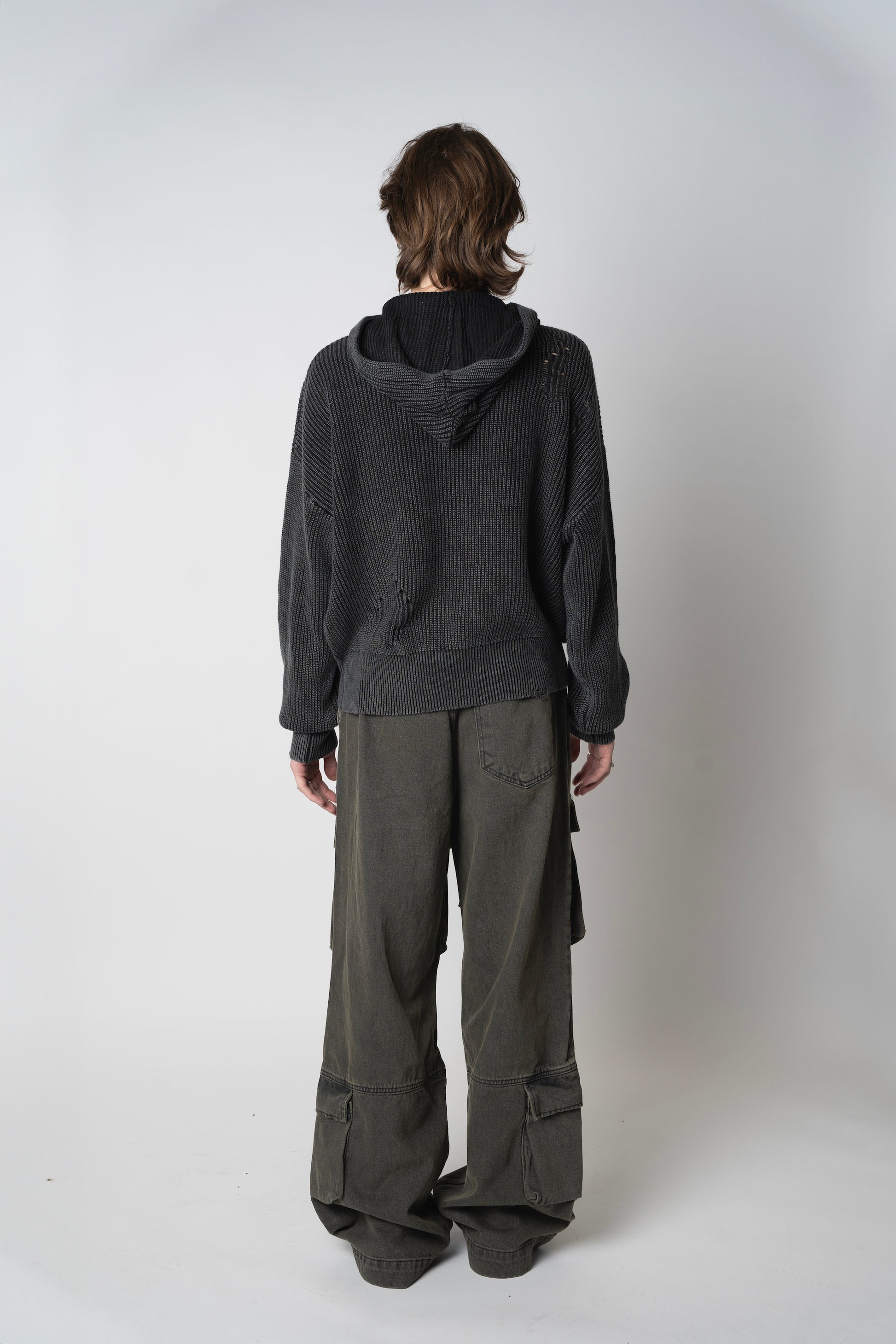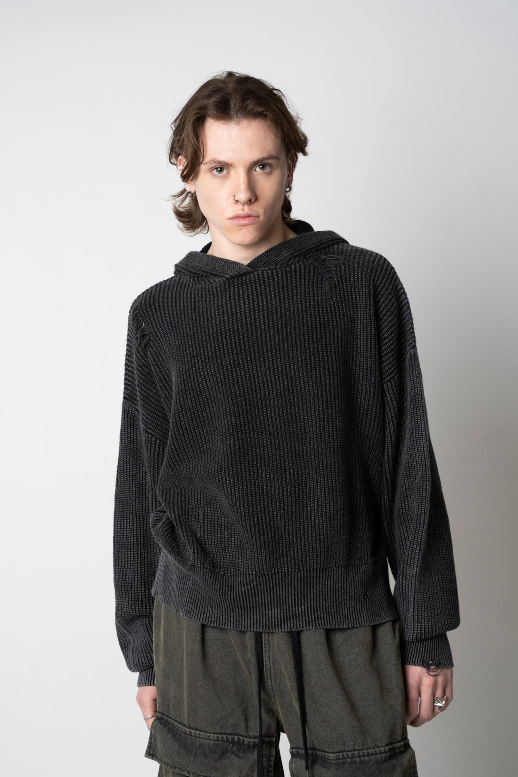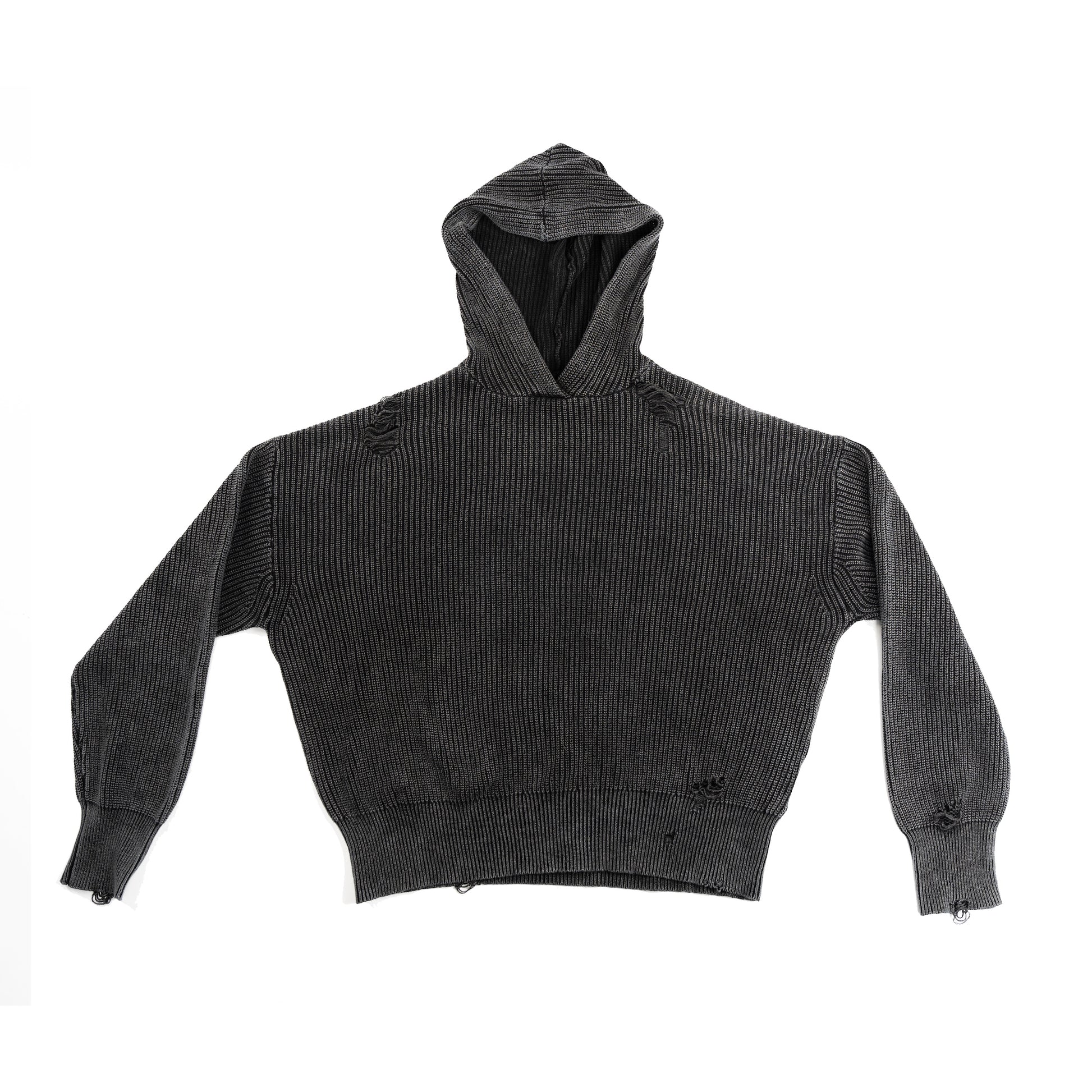 DISTRESSED KNIT HOODIE