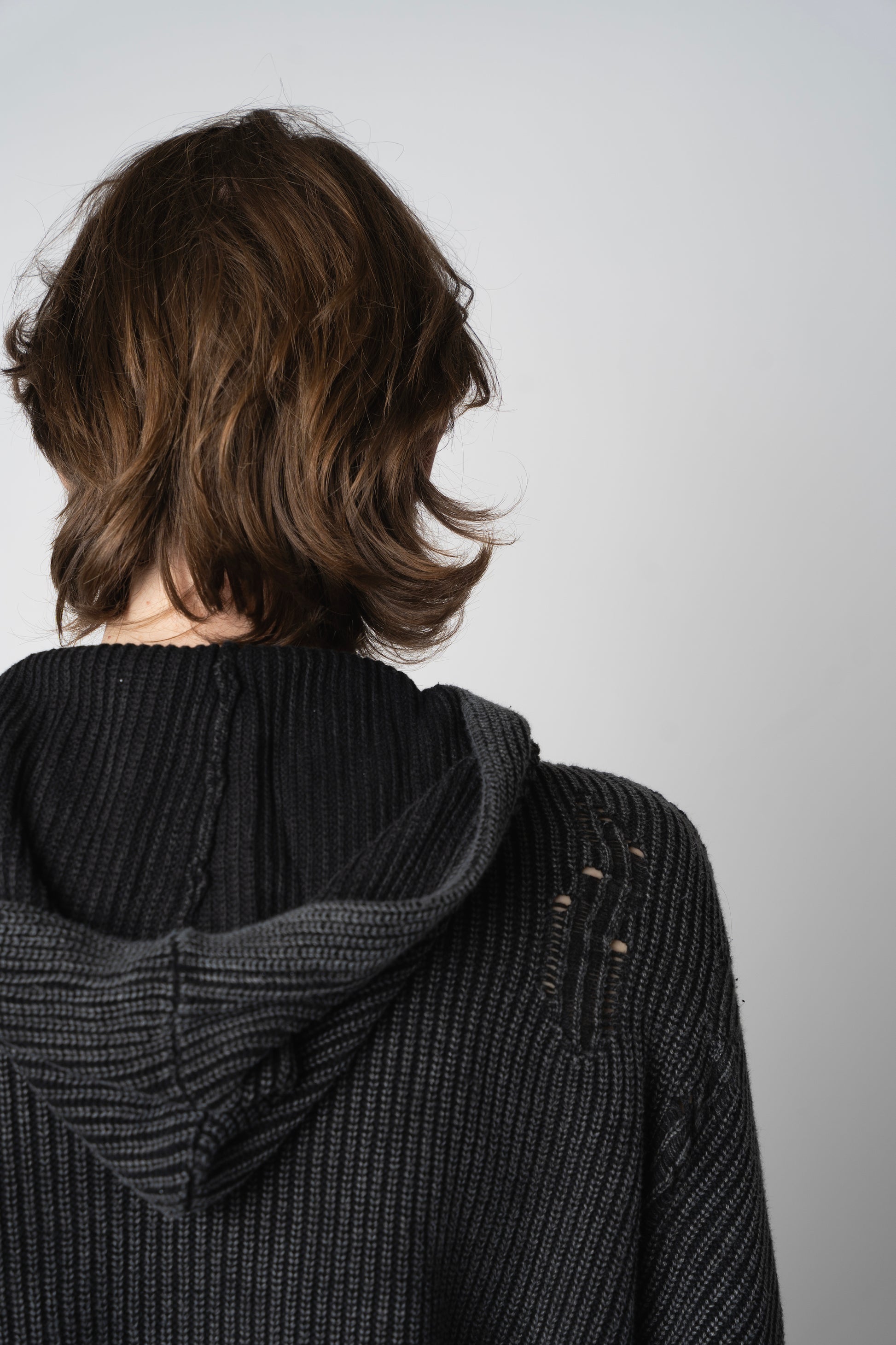 Our distressed knit hoodie—crafted for ultimate comfort and everyday versatility. Perfect to pair with anything in your wardrobe.
