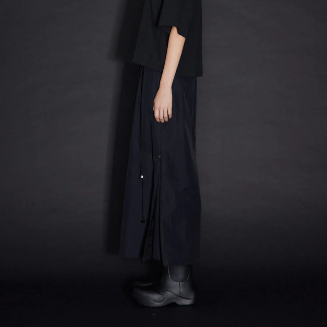 This Recycled nylon mermaid skirt utilizes a wrinkle-resistant and lightweight blend material, allowing for versatile styling with zippers on both side seams. It's crafted from eco-friendly fabric, prioritizing sustainability.