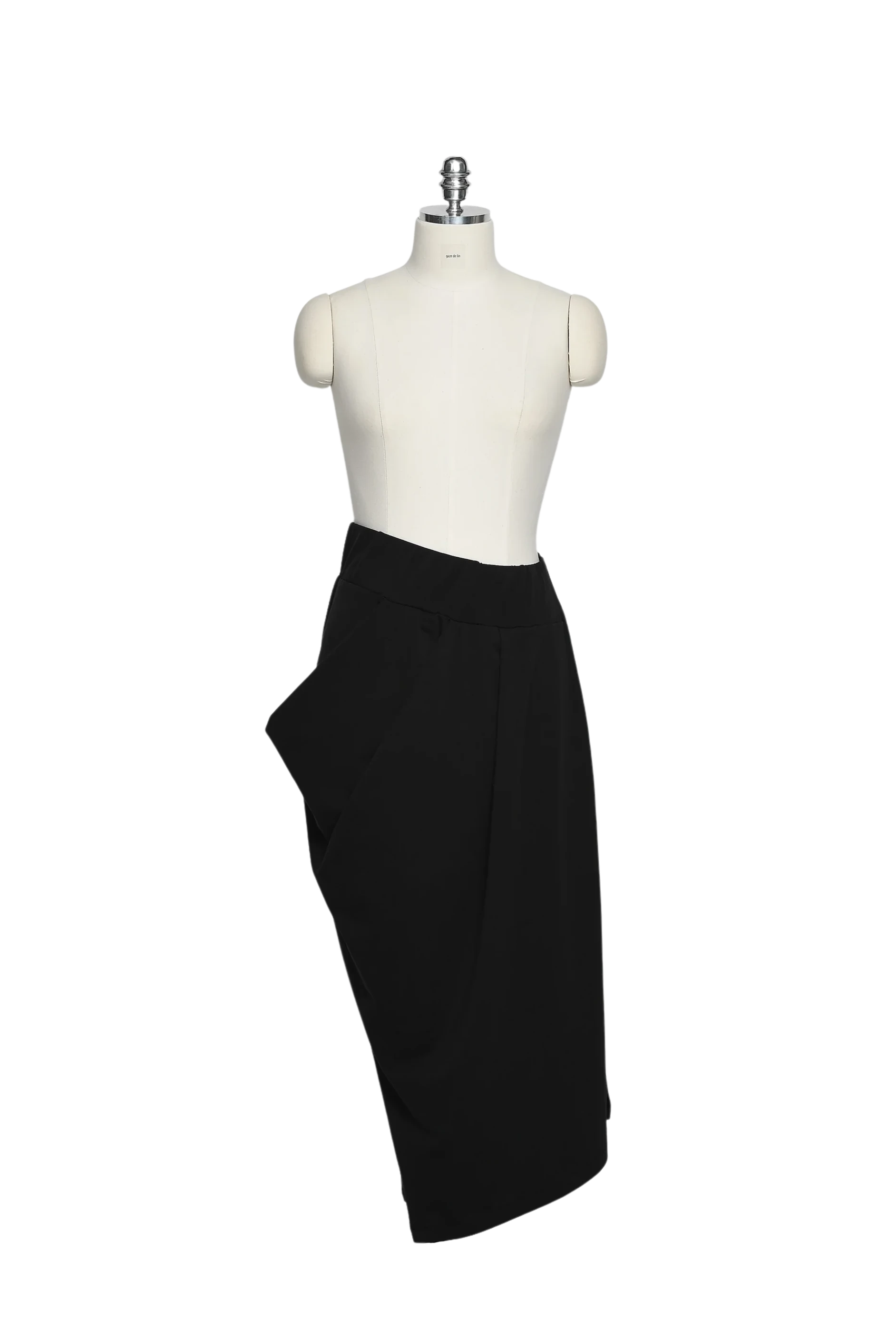 This avant-garde skirt features a wide waistband that comfortably covers the waist and abdomen when worn, with its asymmetry adding a unique touch. Crafted from recycled spun yarn, this one-pocket skirt prioritizes sustainability.