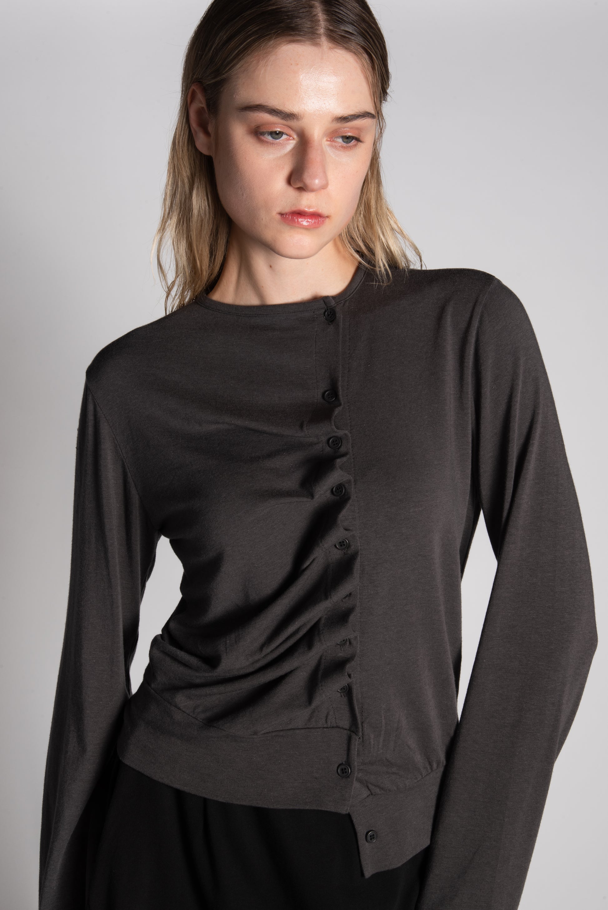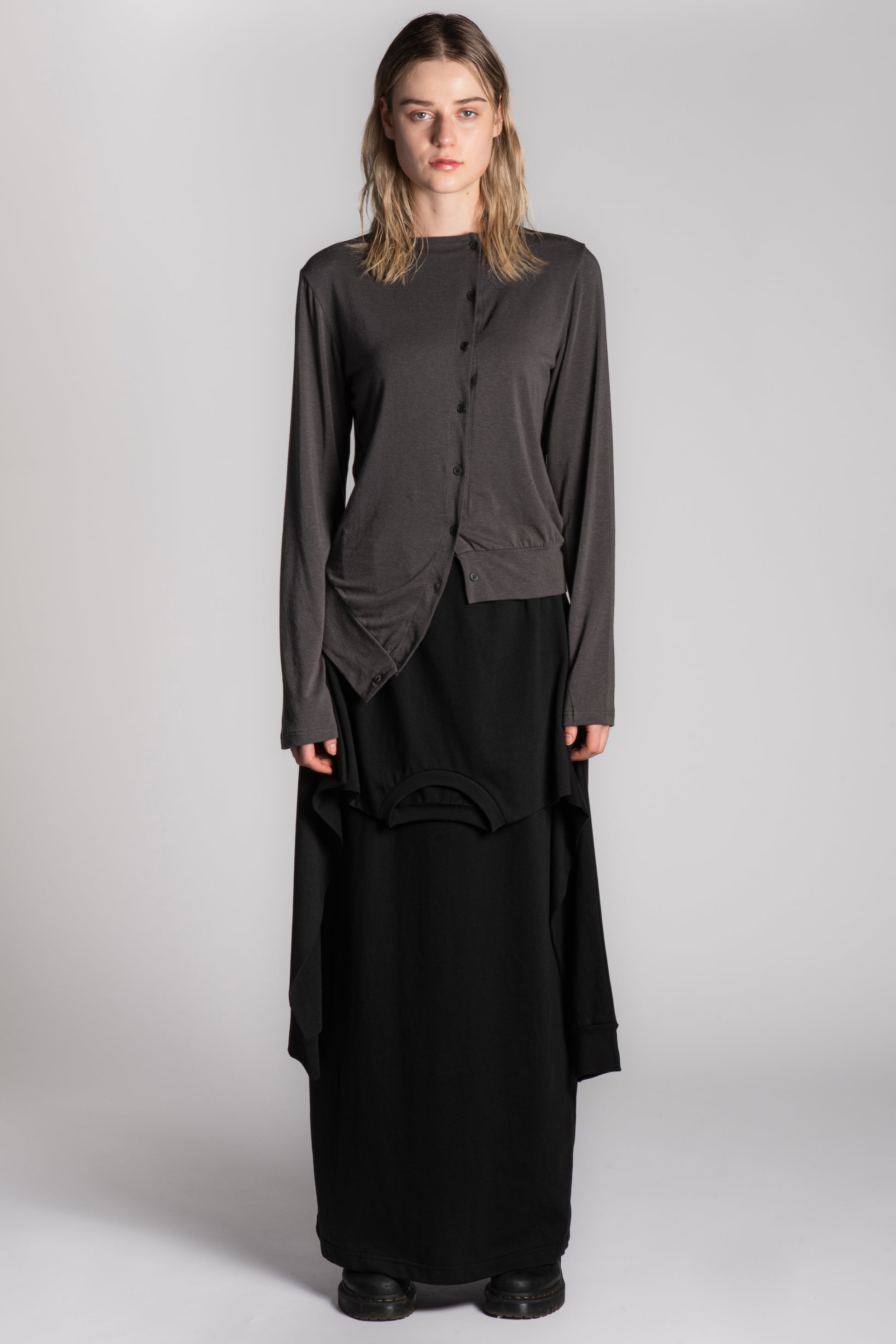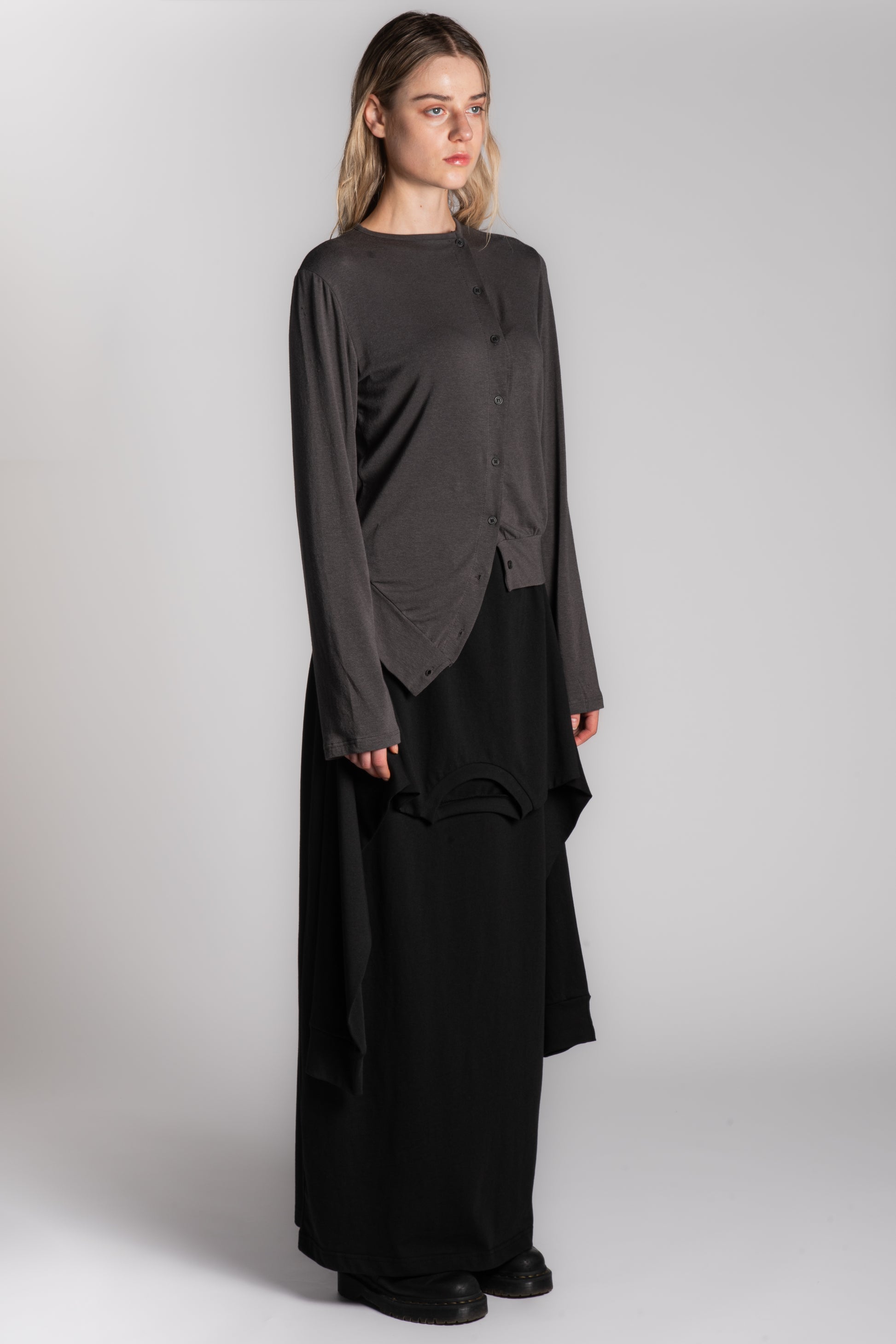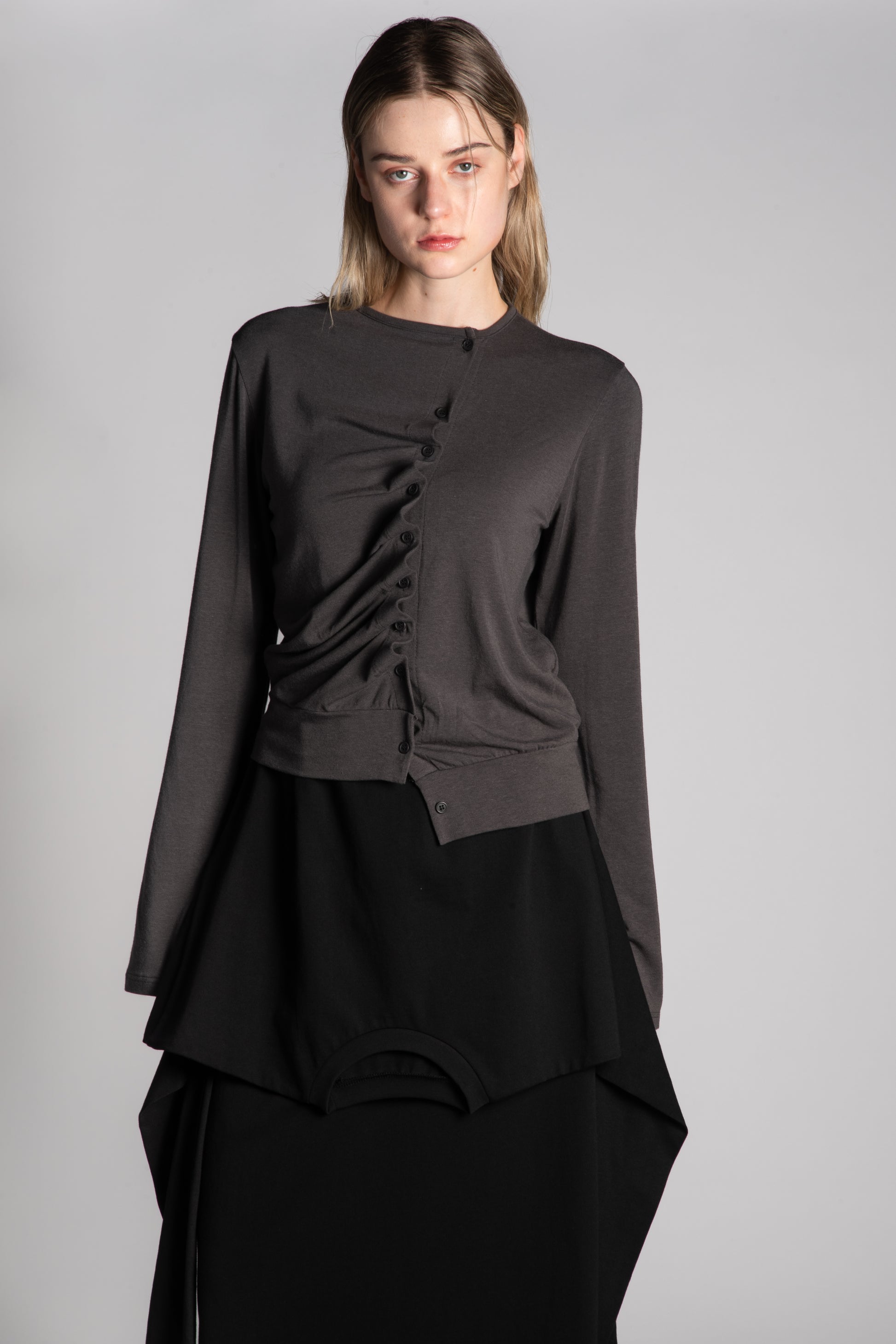 The ASYMMETRICAL CARDIGAN reinterprets volume and form through architectural construction.