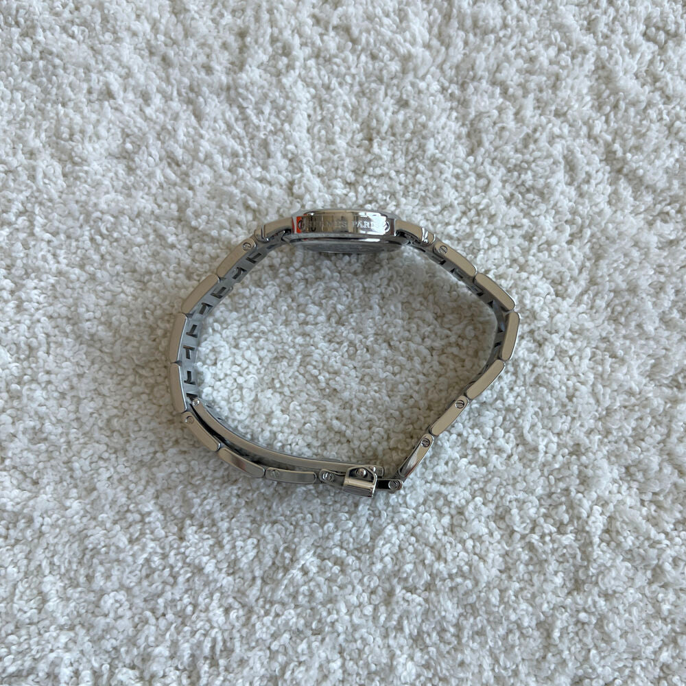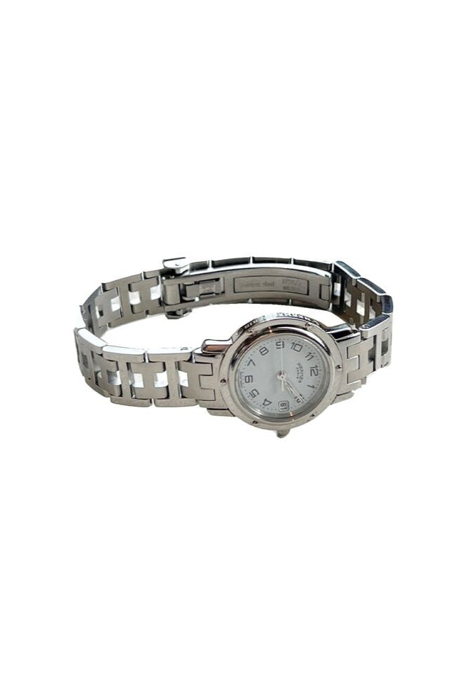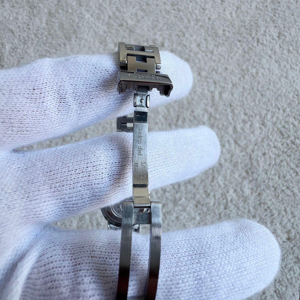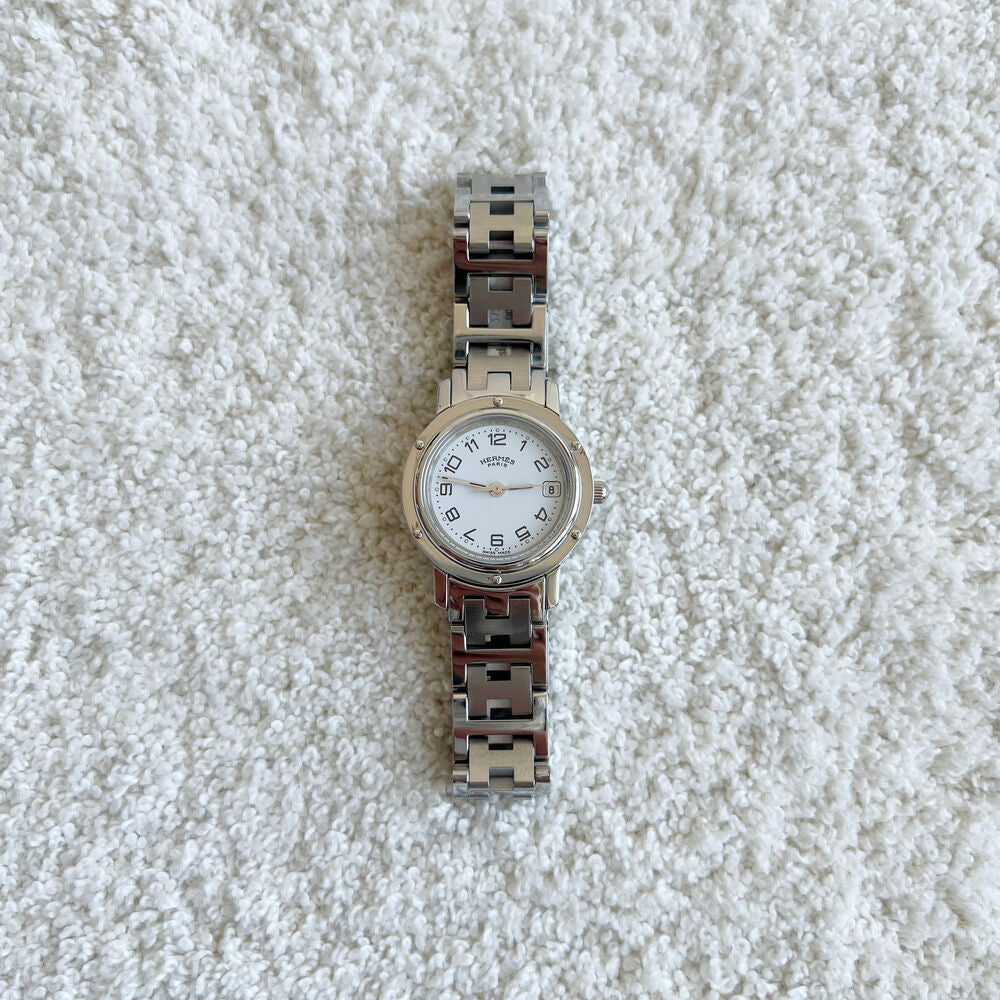 This is the vintage Hermes Clipper Watch, a discontinued model that’s highly sought after. It features a popular silver color with a white bezel and the iconic H-point bracelet. The sapphire crystal glass is scratch-resistant, and there’s a practical date window at the 3 o’clock position. Powered by the reliable ETA quartz movement, with regular battery changes, this watch will serve you well for years.