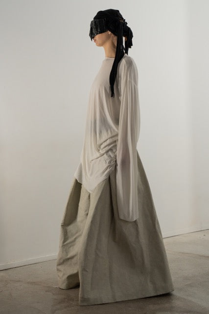 Crafted from a lightweight viscose-blend fabric, the Long Sleeve Top embodies effortless movement and refined minimalism. Designed with a relaxed silhouette and soft, fluid texture, it falls naturally along the body to create an elegant, elongated line.