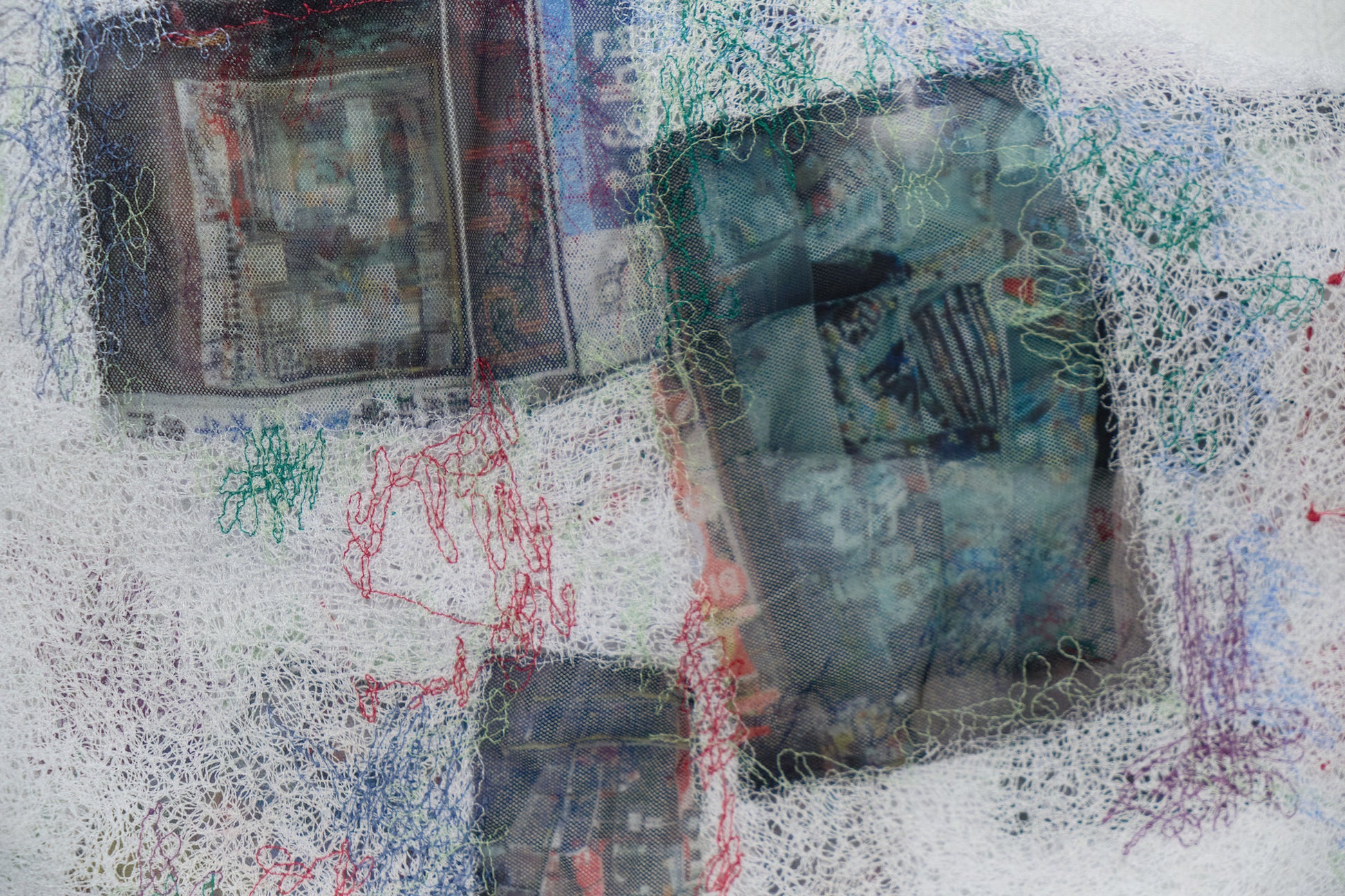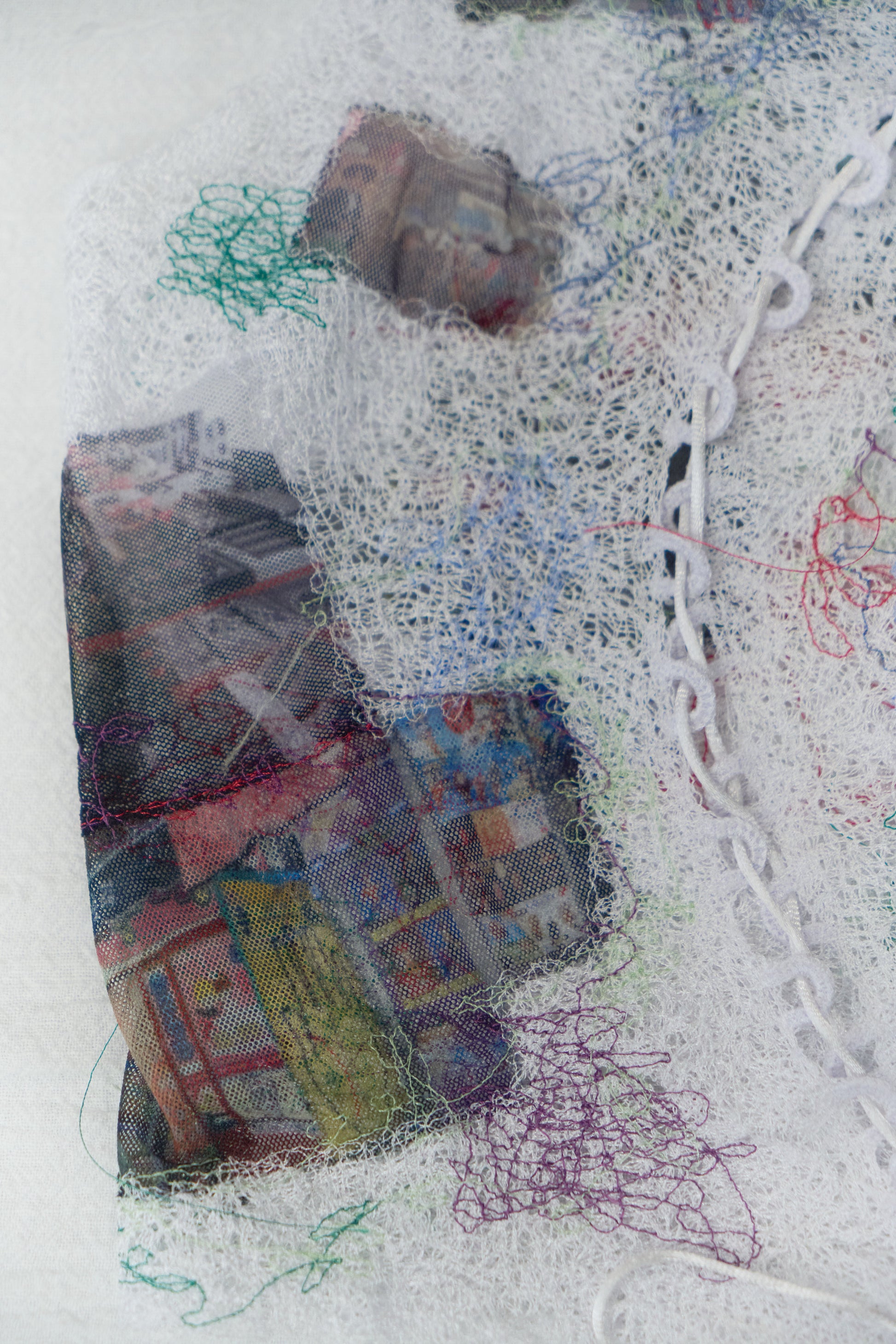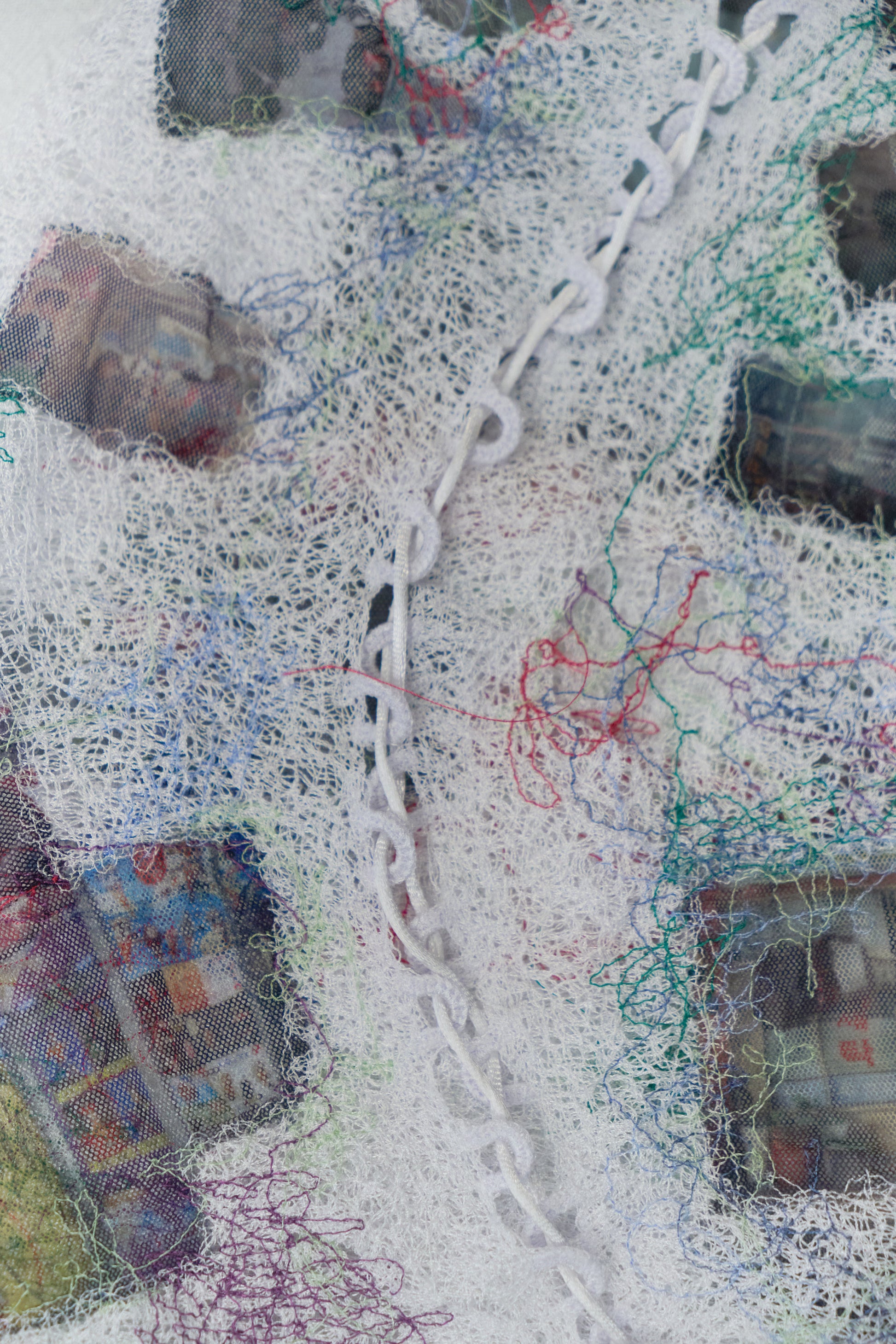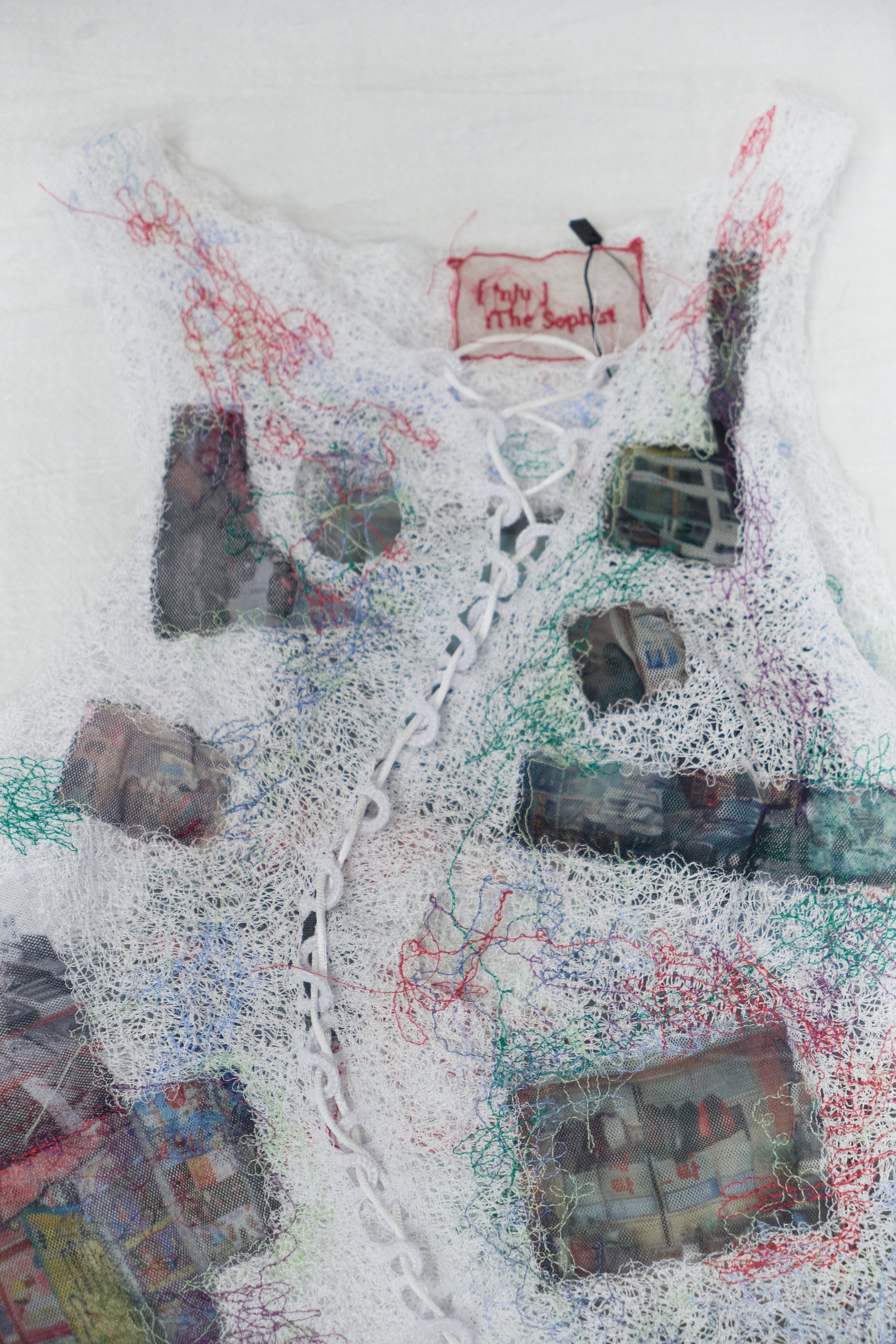 The Yang Vest Top is a zero-waste garment that reuses threads and other materials. The textile is meticulously handmade using a free-motion embroidery technique, making each piece one of a kind. Each garment takes approximately 40 hours to create, highlighting the dedication and time behind every stitch.