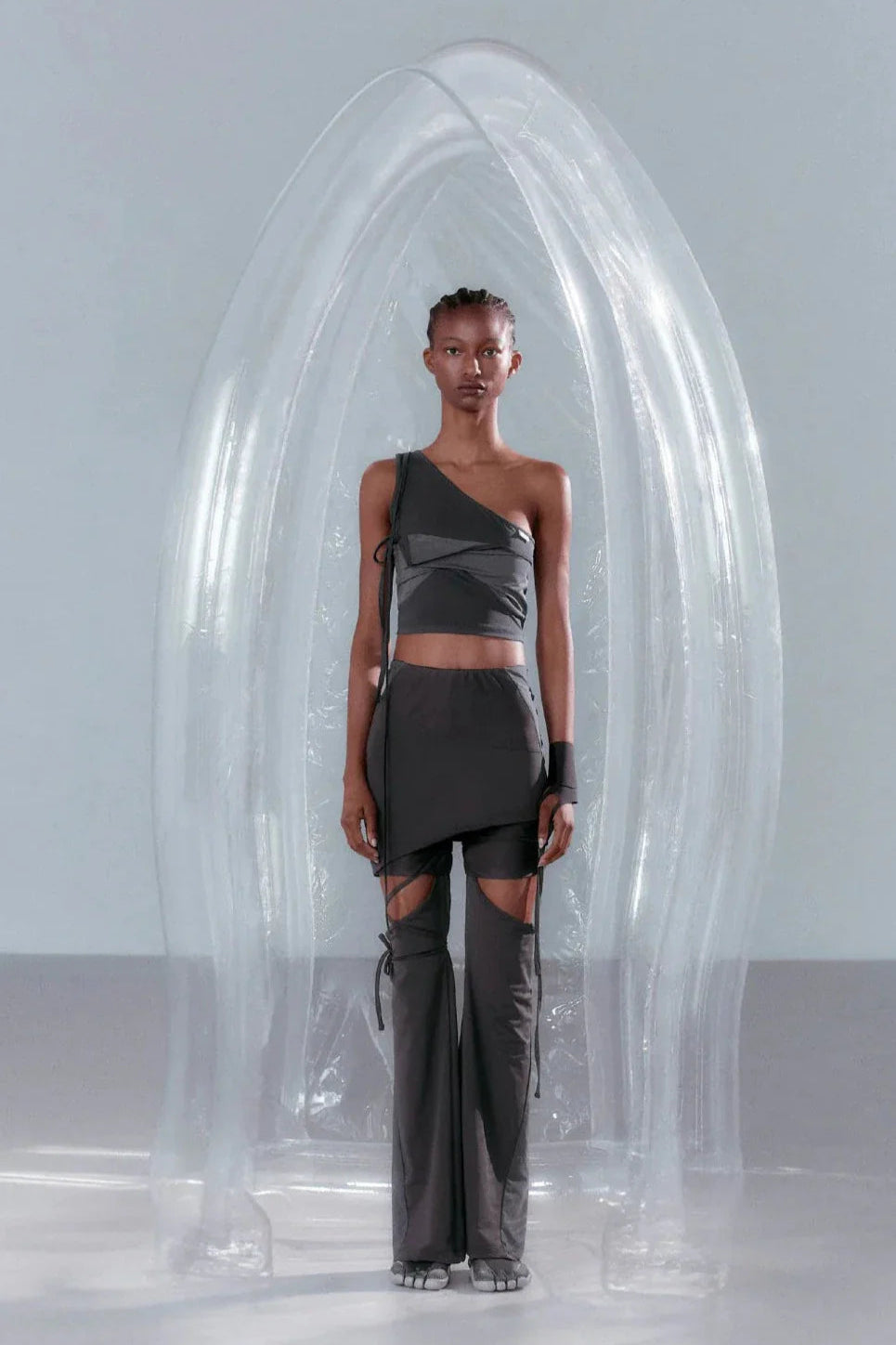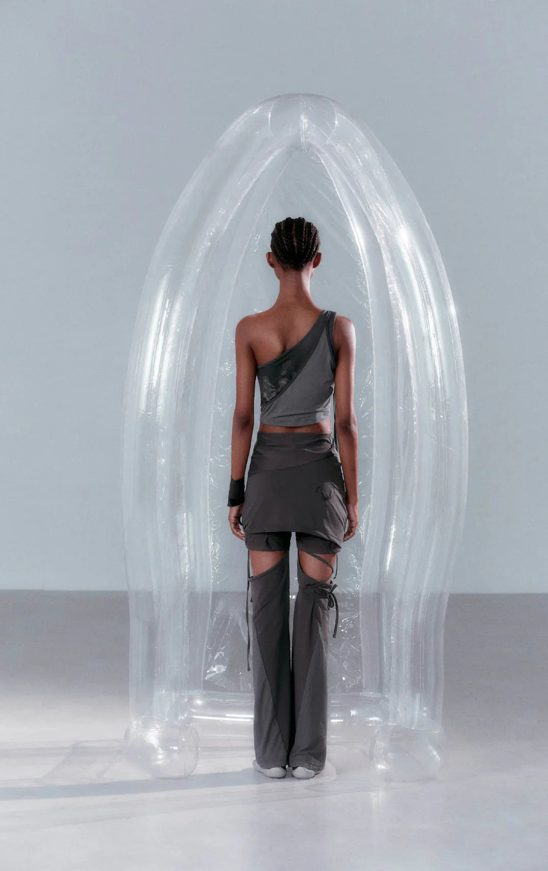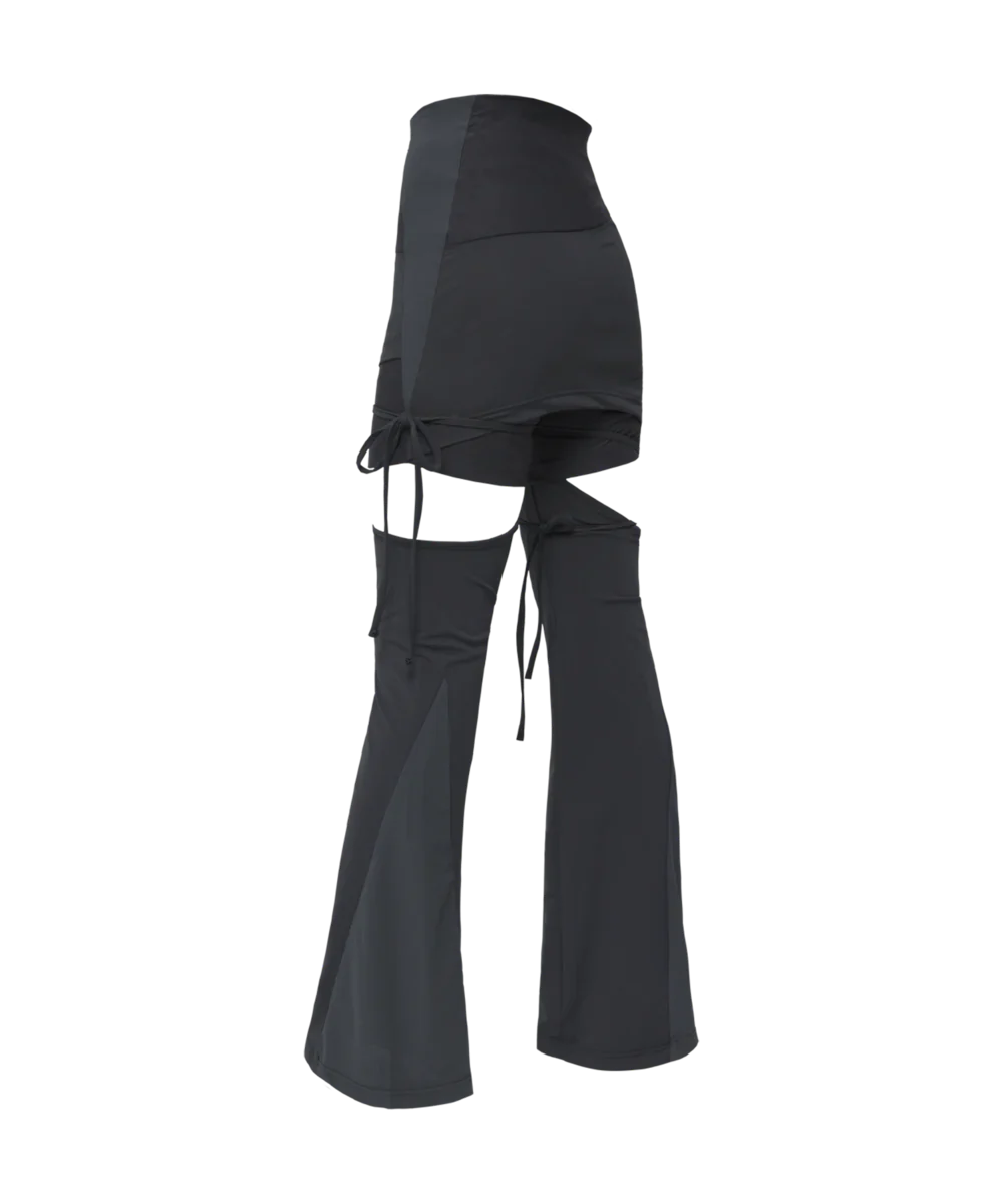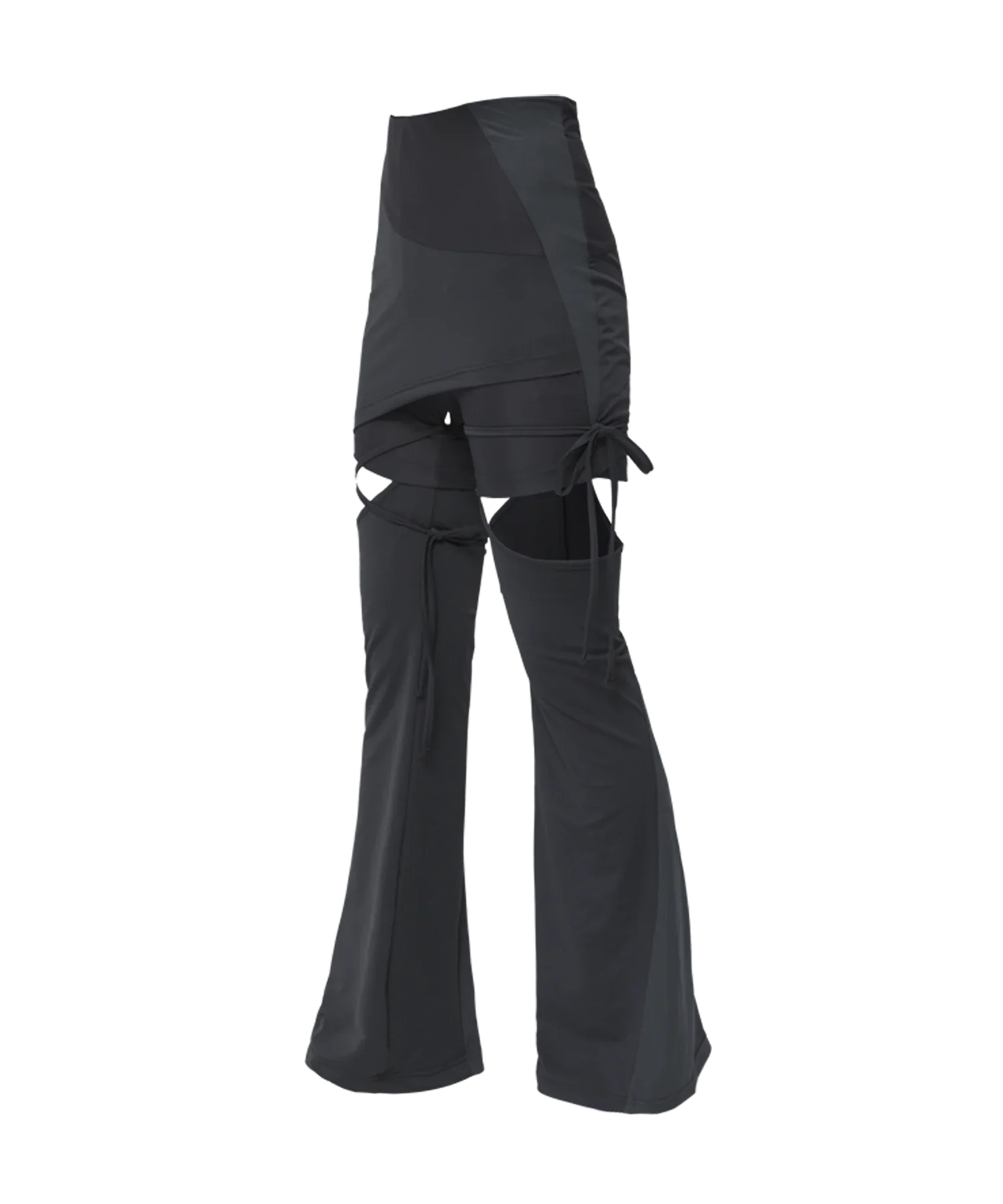 Introducing our versatile Skirt Shorts Leggings, which transform into leg warmers and feature an unbalanced length overlapping skirt design, excellent elasticity, cold, dry functional material for opacity, and fabric coloration with different textures on the side lines.