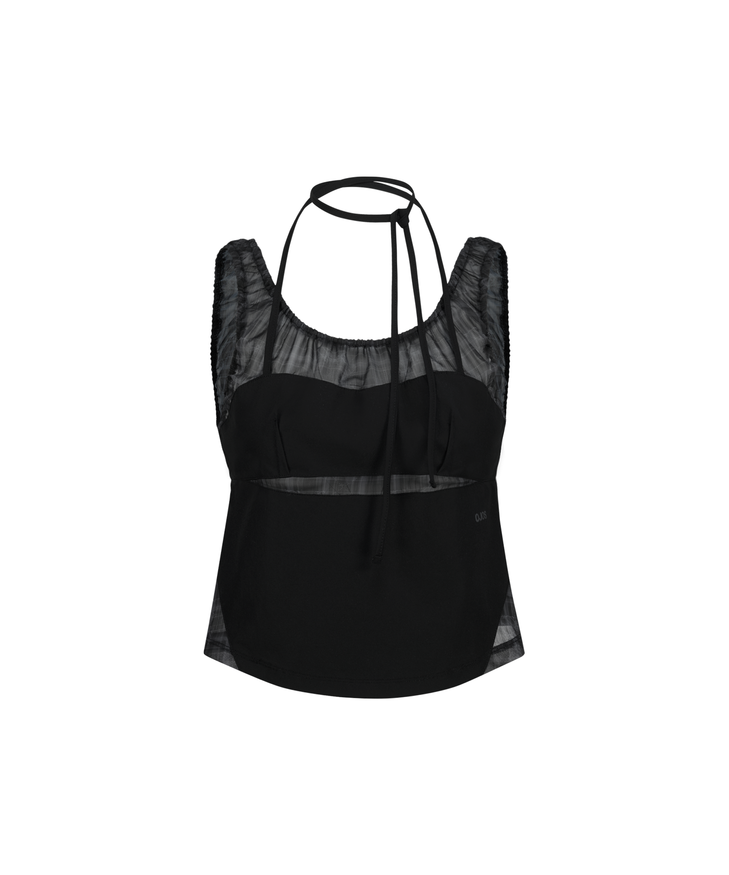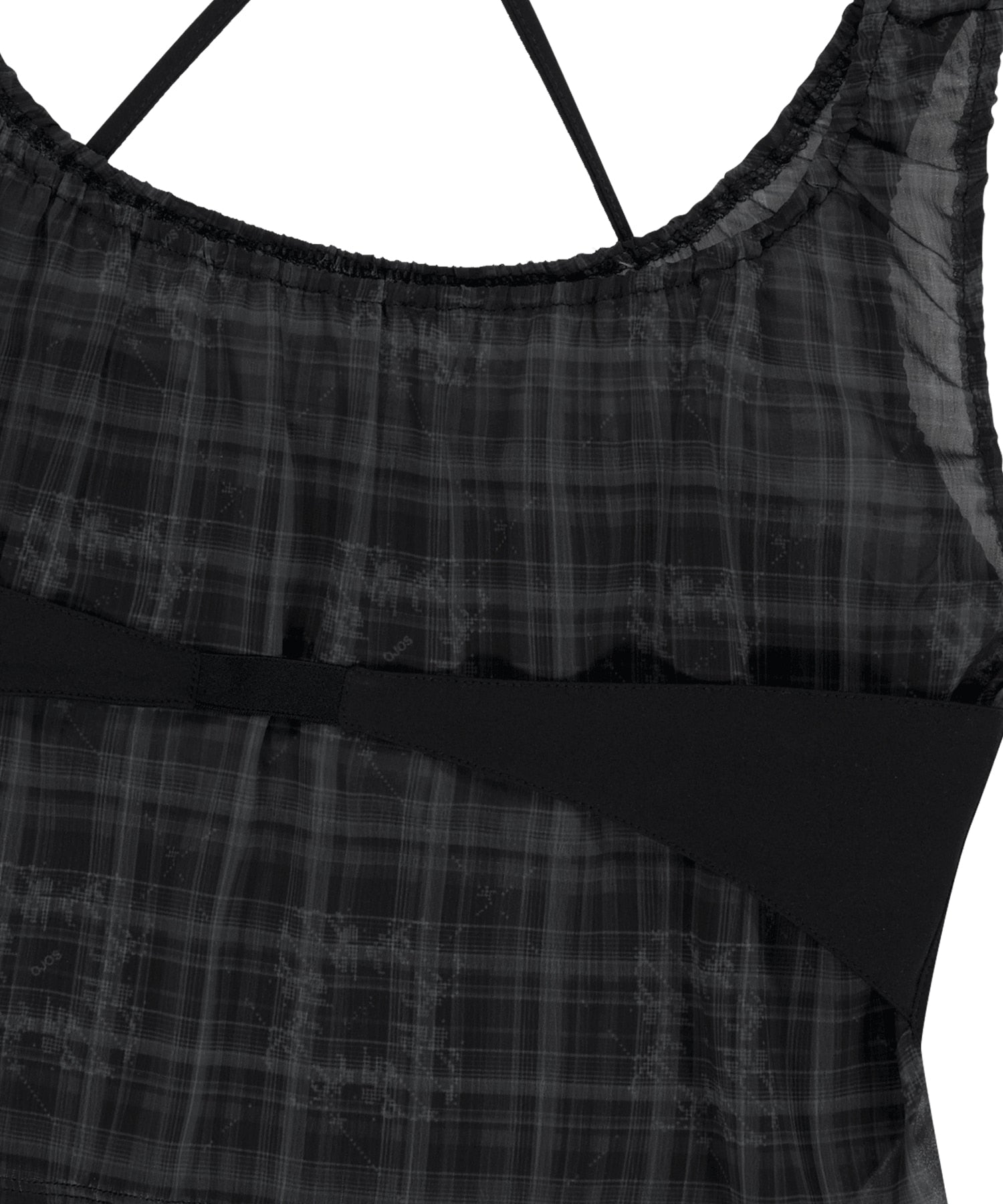 HALTER STRAP PLAID SLEEVELESS BLACK