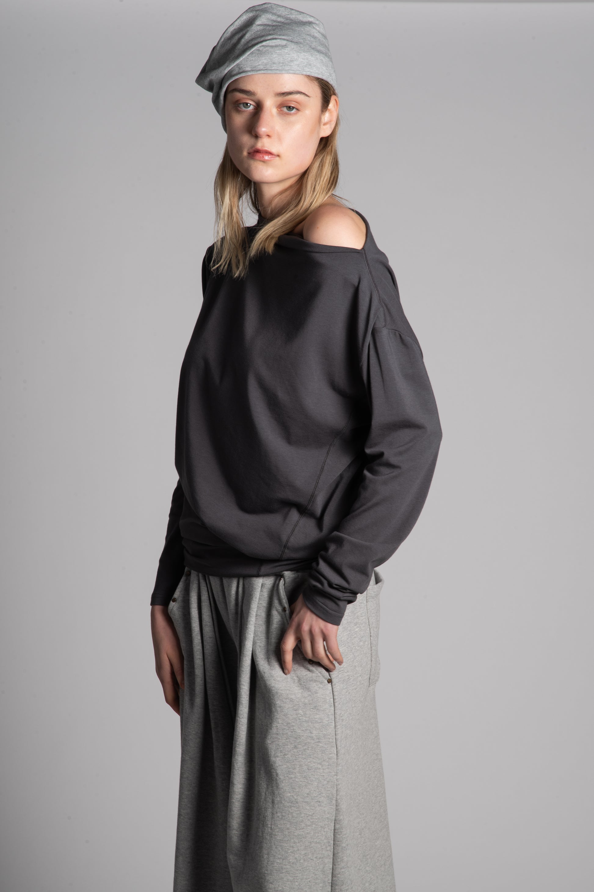 ONE SHOULDER GREY TOP