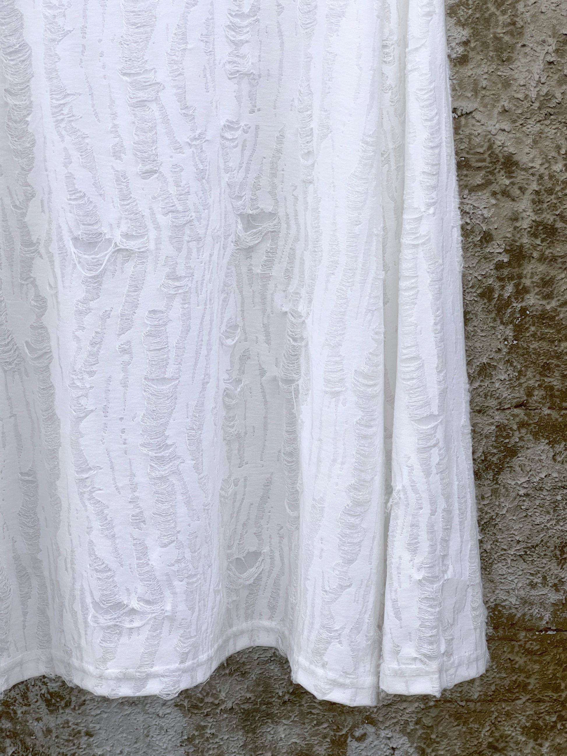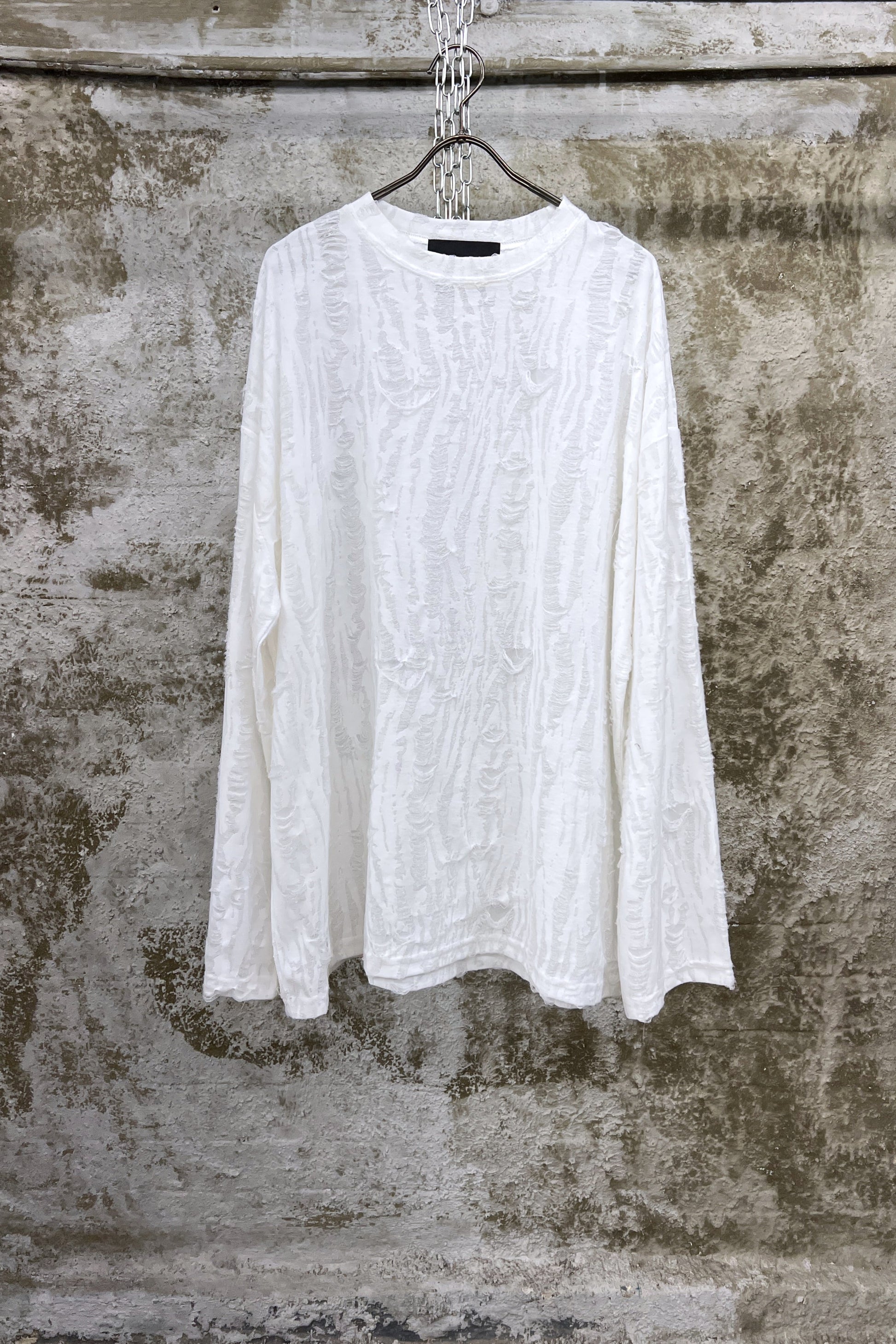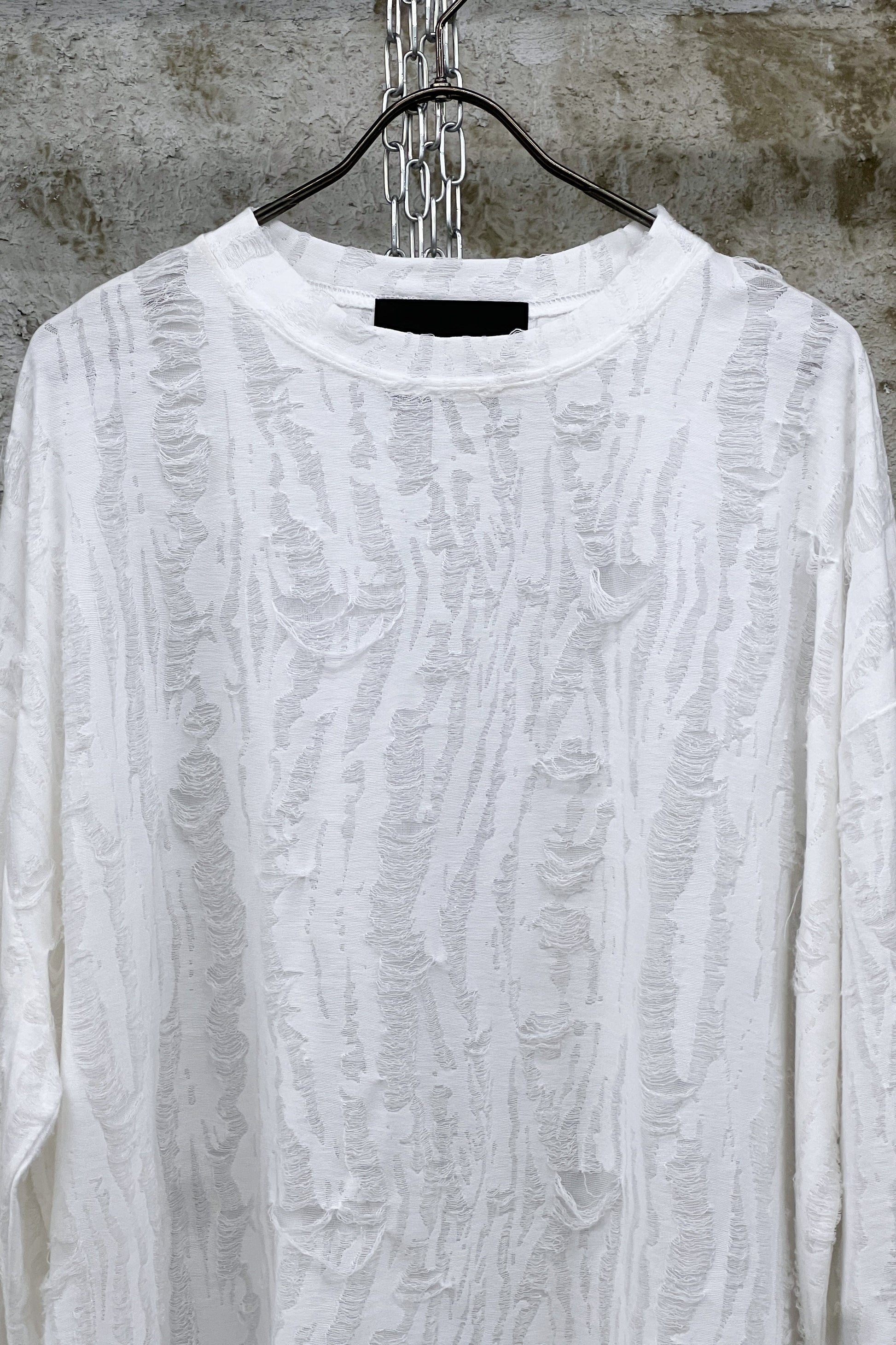 DECONSTRUCTED LONGSLEEVE TEE — WHITE TEXTURED HOLES