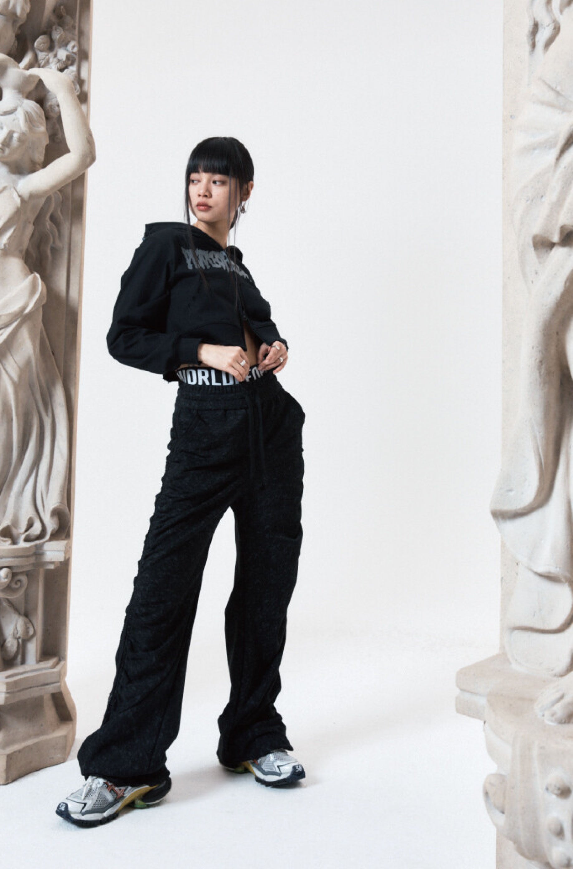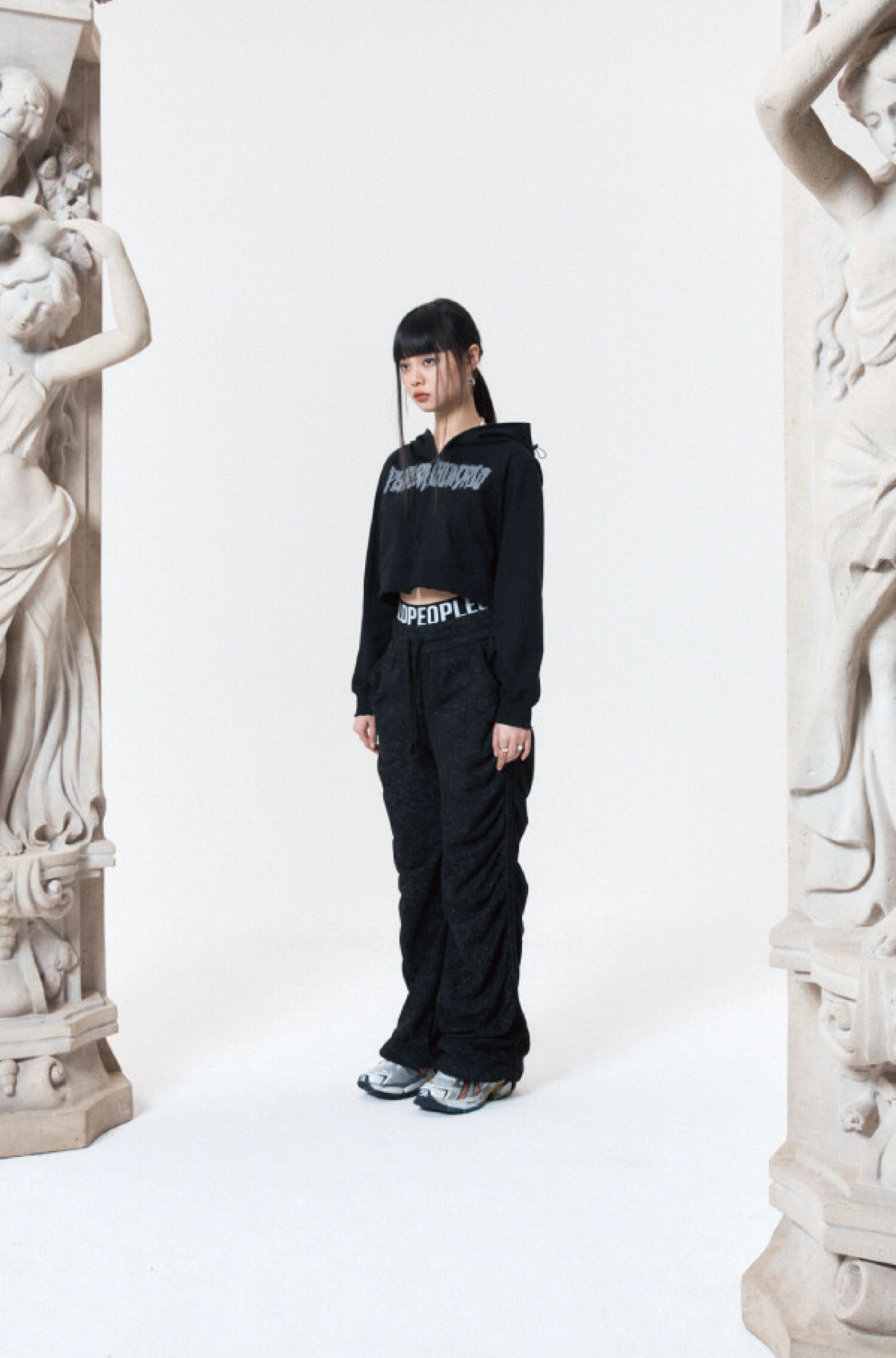 SHIRRING WIDE BANDED PANTS BLACK