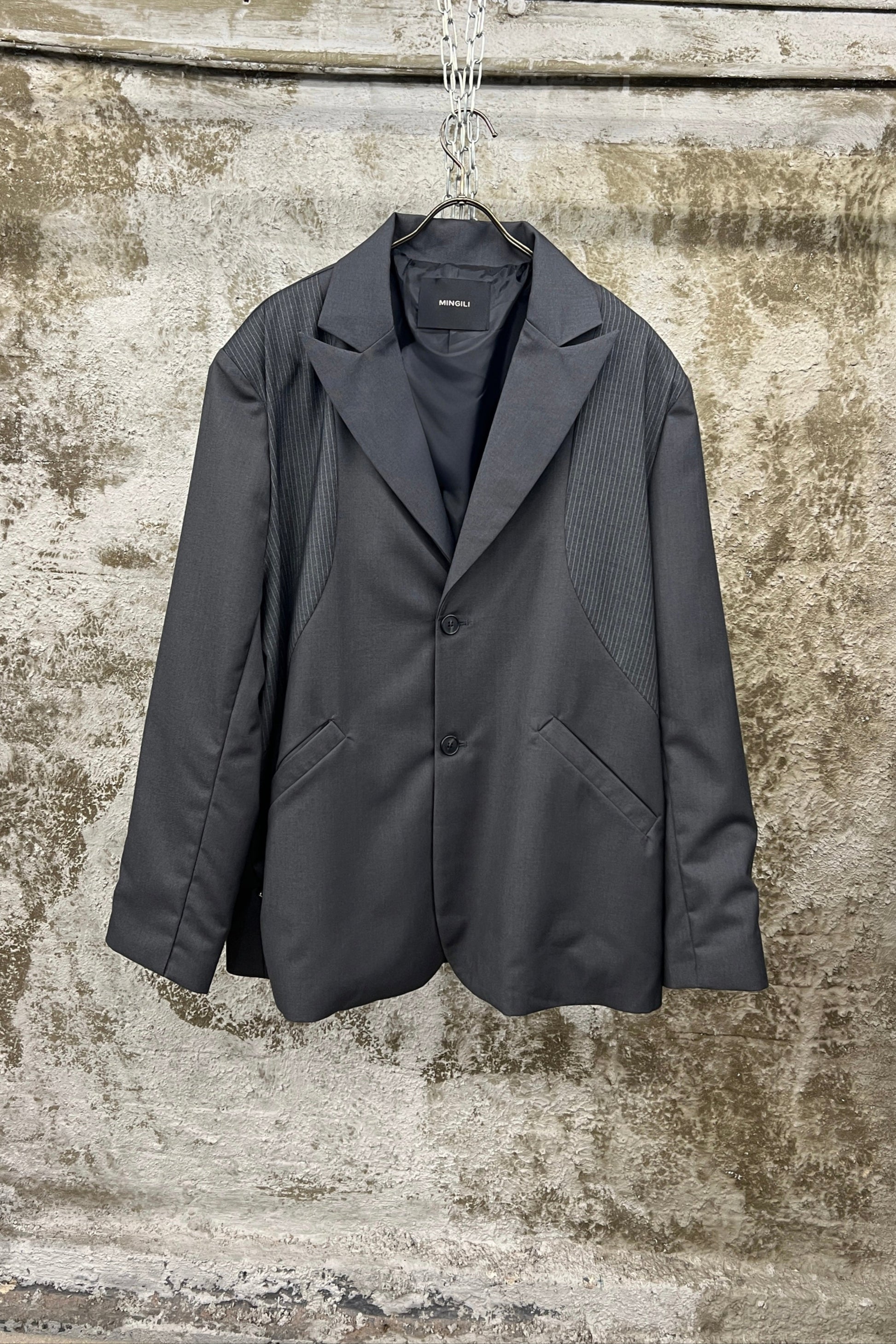 TEXTURED PANEL BLAZER — CHARCOAL GREY