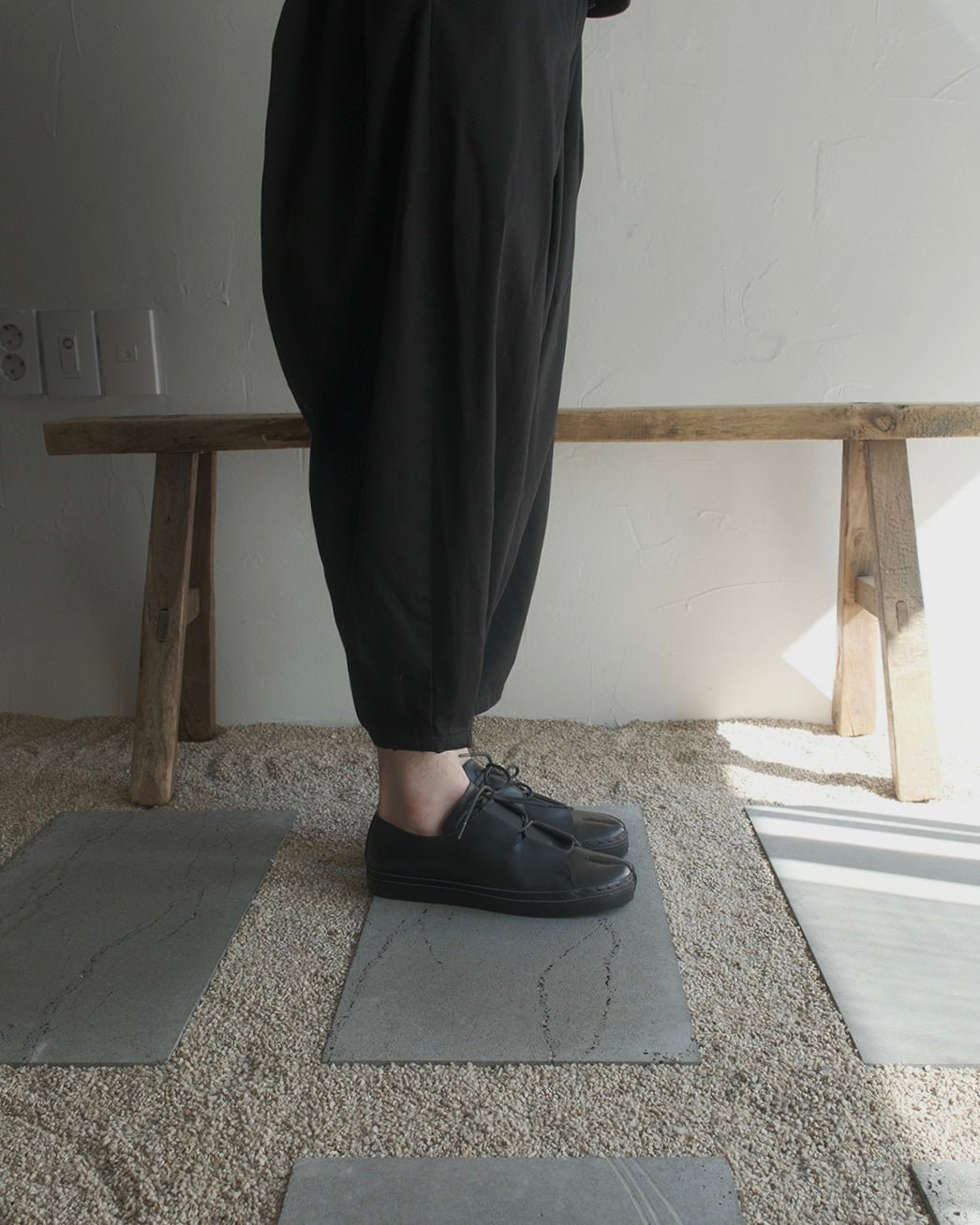 RYOMA TABI TOE BLACK LEATHER FLATS