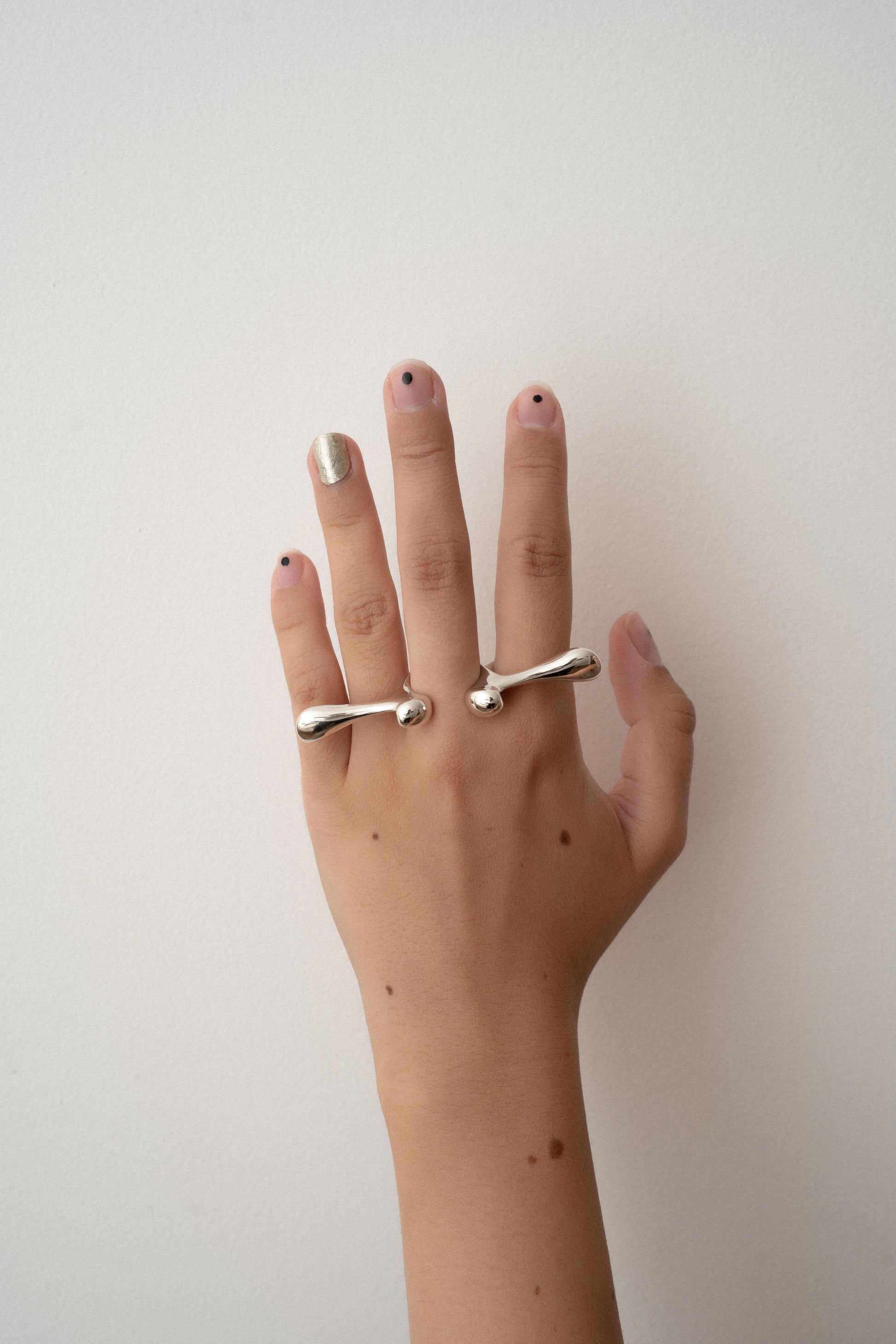 Each ring is a trace of what he saw and felt, from the organic motion of space-borne creatures to the fragmented ruins of a digital terrain. Sculptural and symbolic, they are wearable artefacts and art pieces of migration, memory, and transformation.