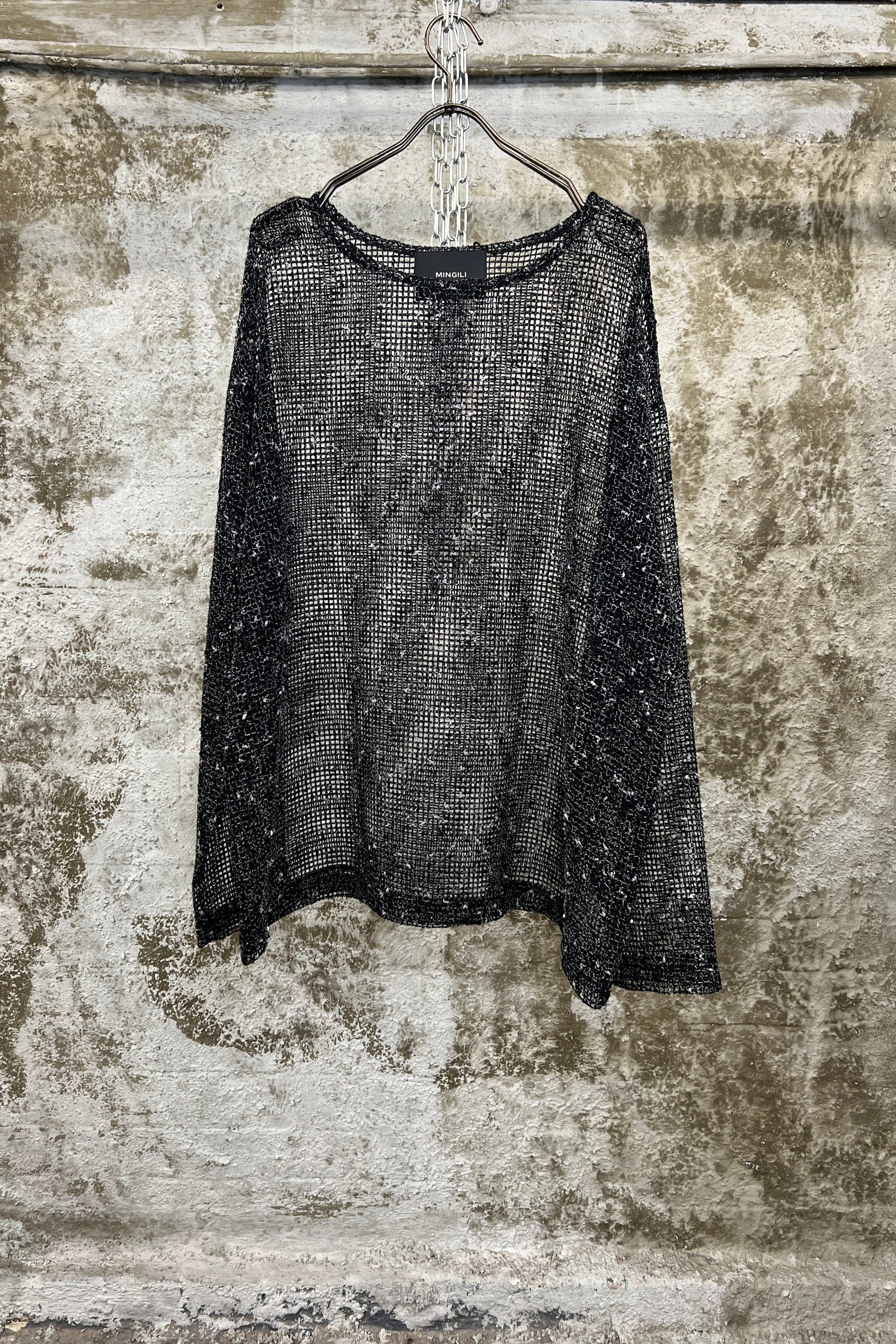 Designed to strike a balance between artistic expression and everyday ease, this open-knit sweater brings color, texture, and breathability together. Its airy construction and oversized fit make it a go-to for spring/summer layering with a touch of individuality.