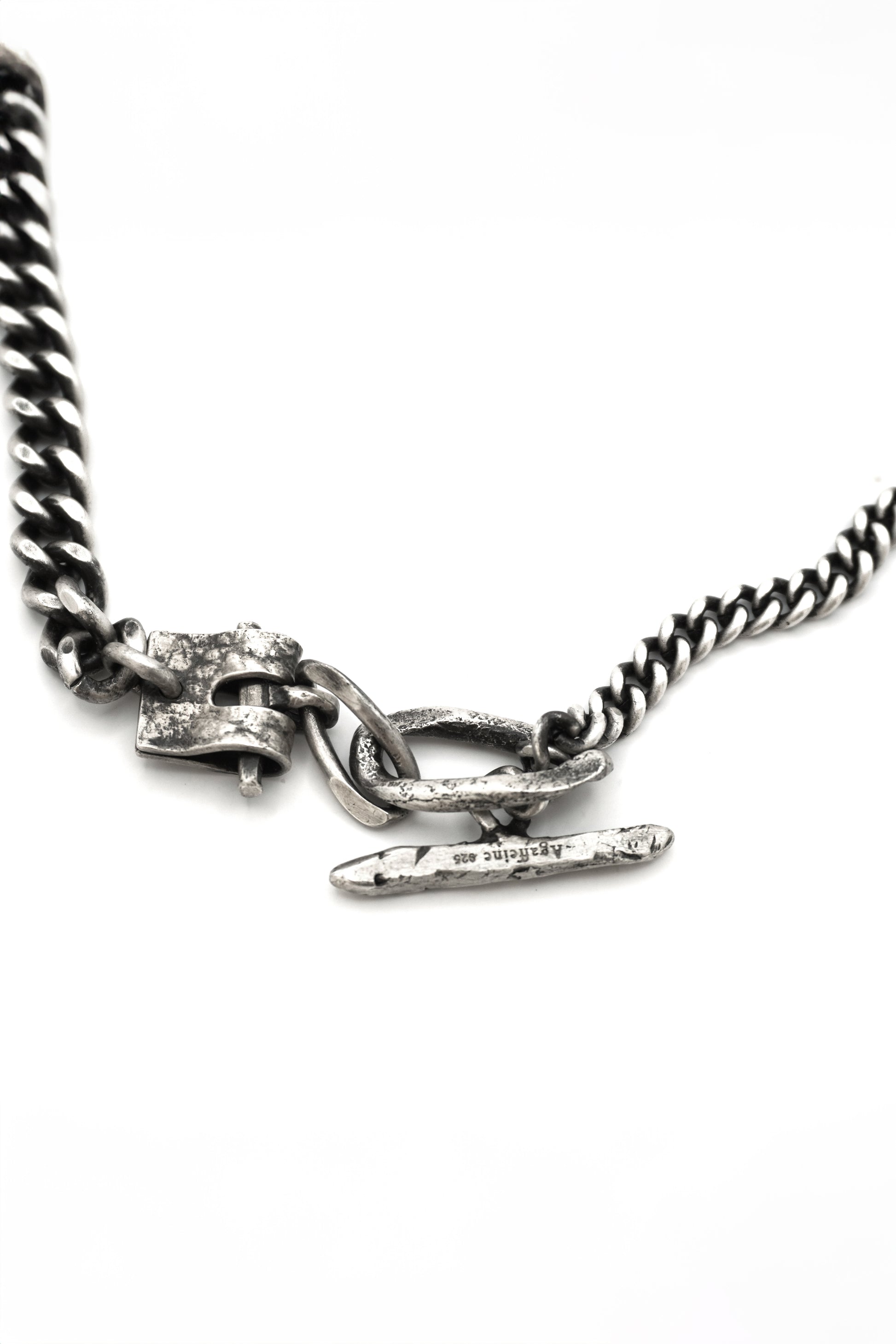 SILVER LEATHER BUCKLE CHAIN NECKLACE