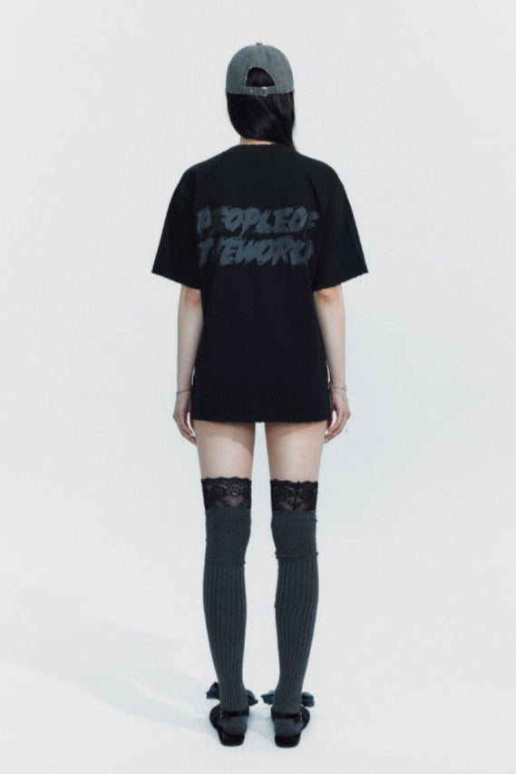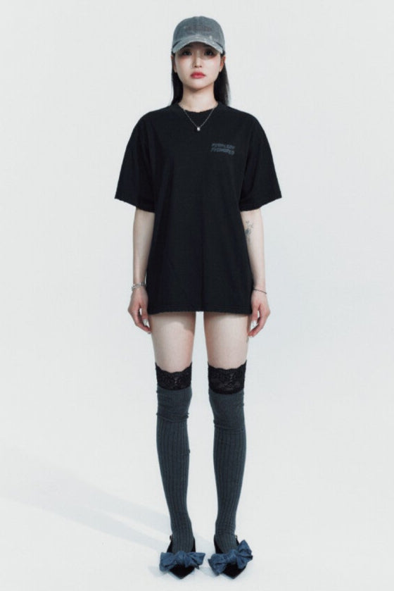 A silicone logo in a handwritten font style adds a subtle seasonal detail. The hem features minimal distressed accents for a refined touch, and the back neck and shoulders are reinforced with chain stitching to prevent stretching. A timeless basic with a touch of vintage appeal—perfect for everyday wear.