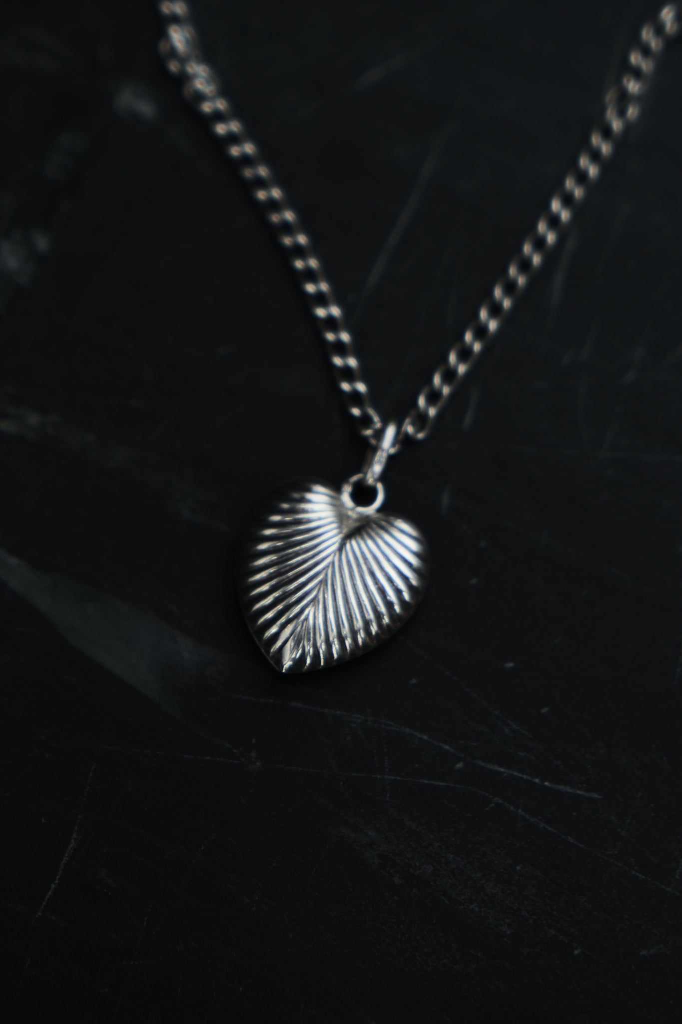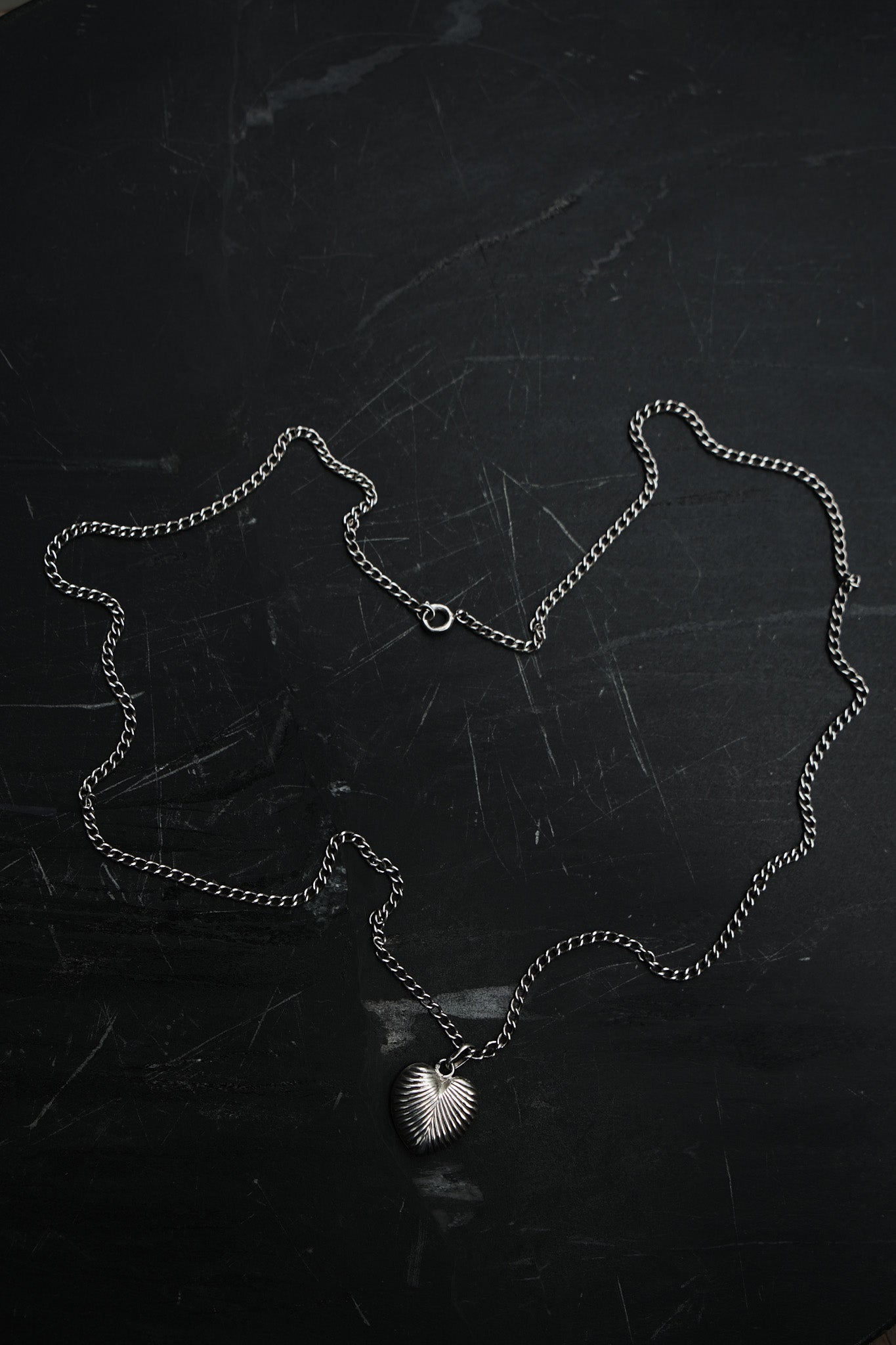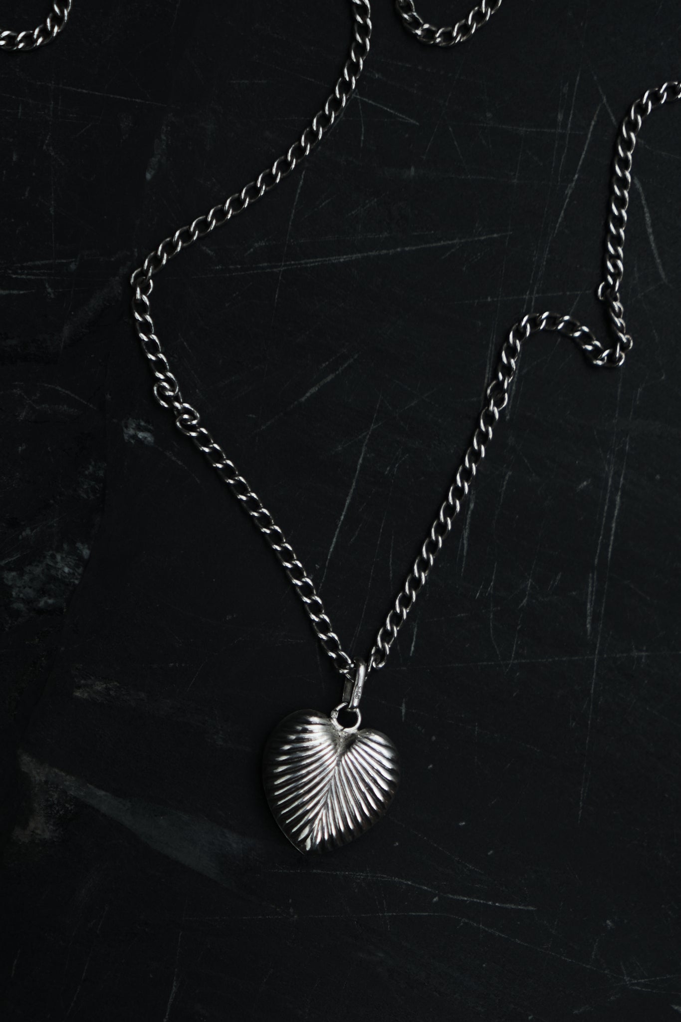 RIBBED HEART PENDANT / CHAIN — STERLING SILVER 925 (10G)