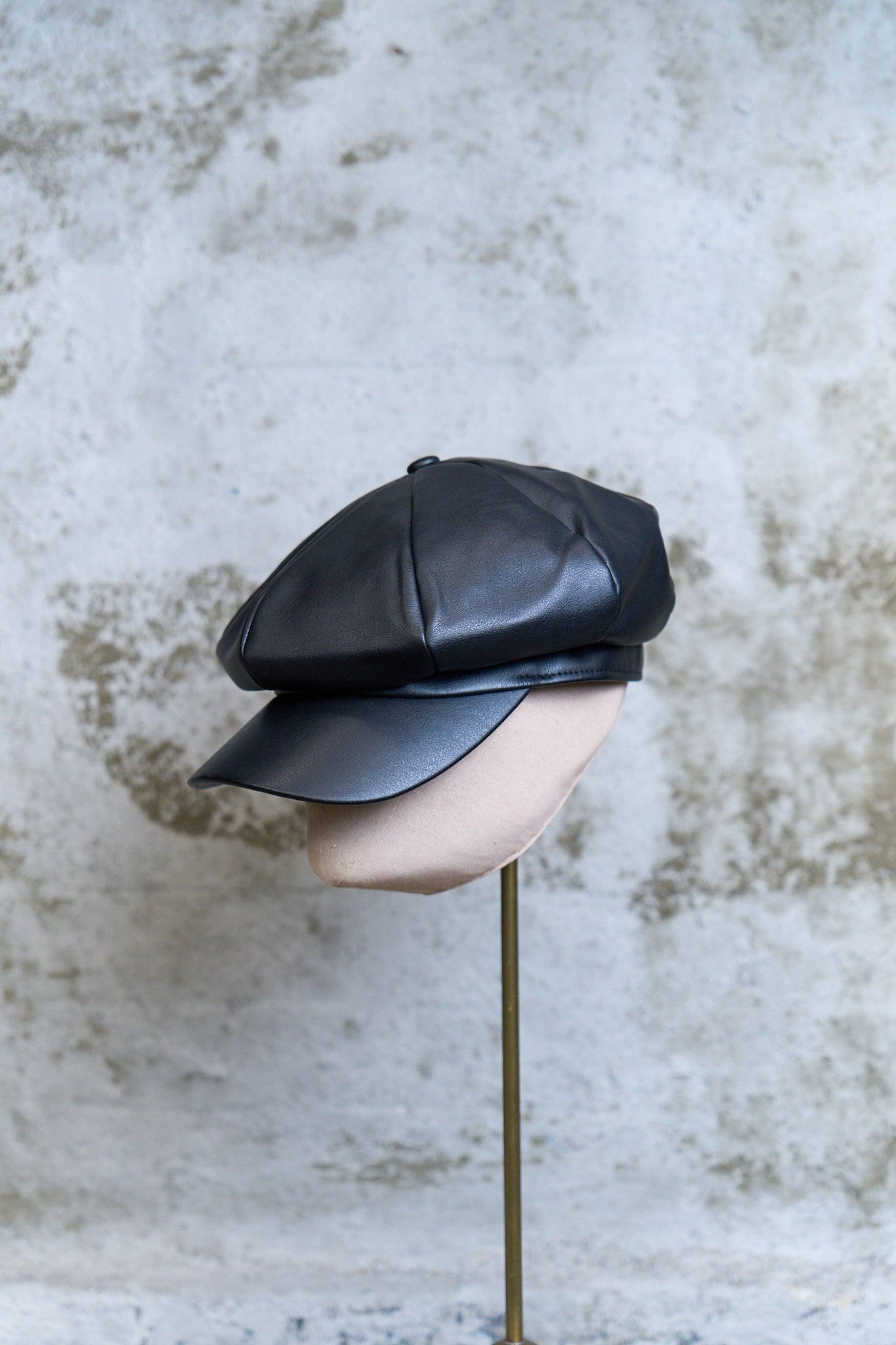 VEGAN LEATHER NEWSBOY CAP - BLACK
